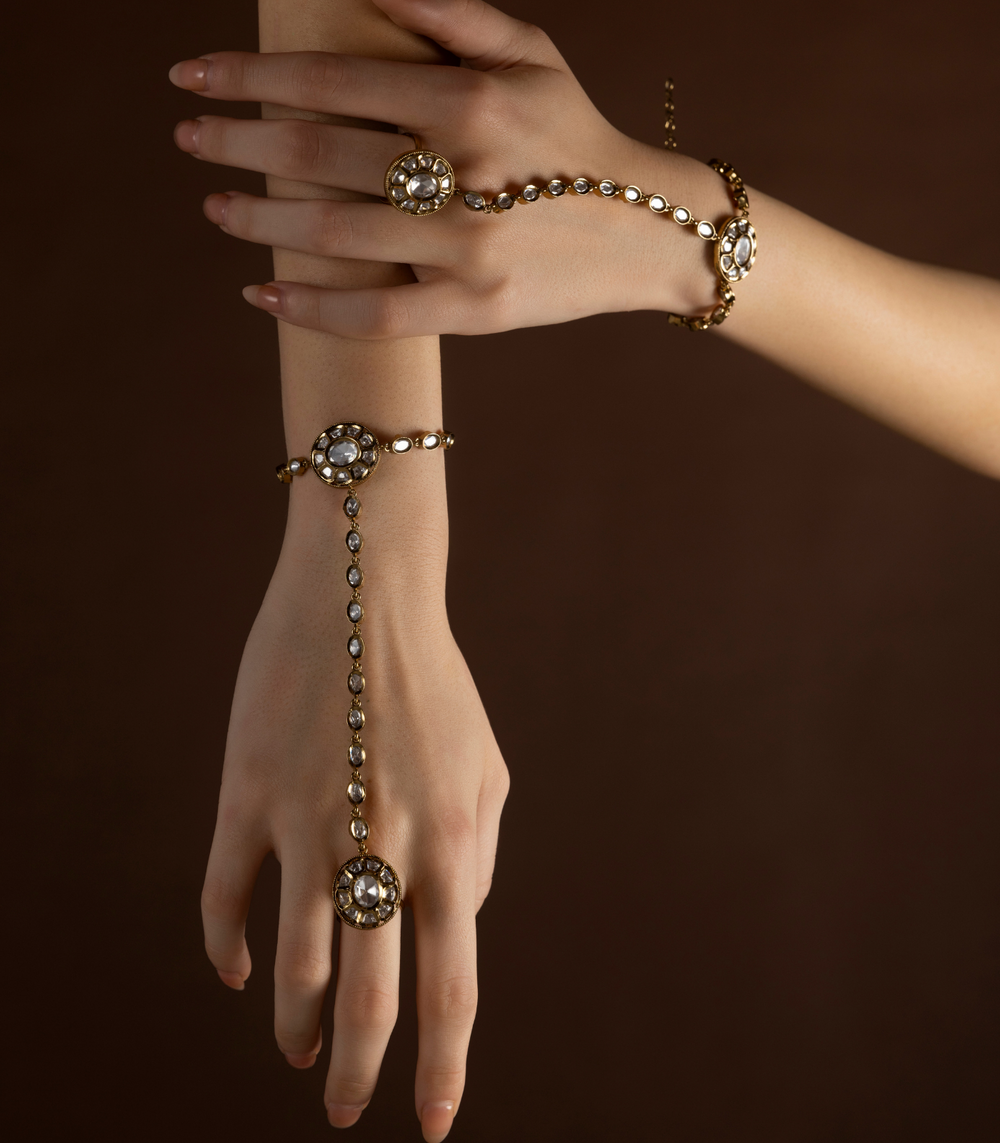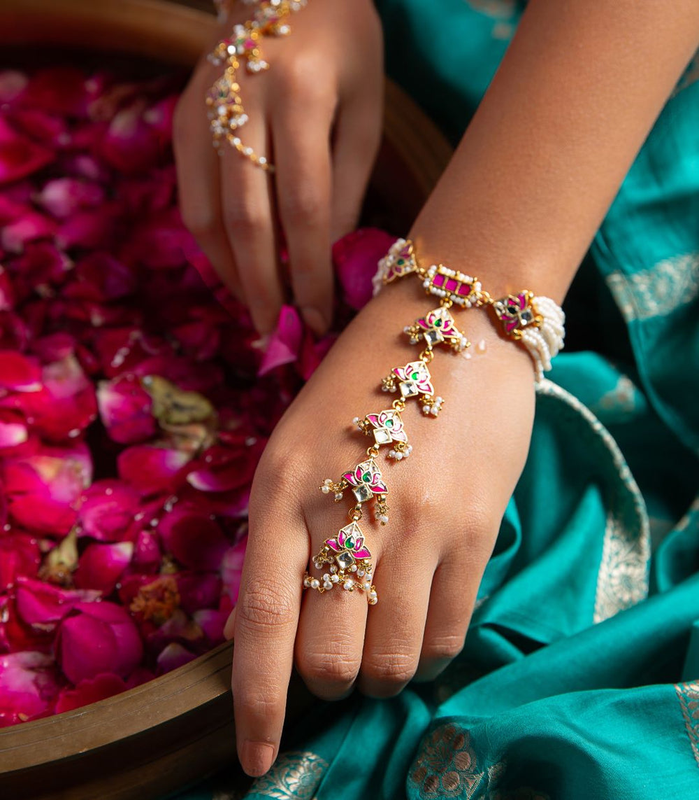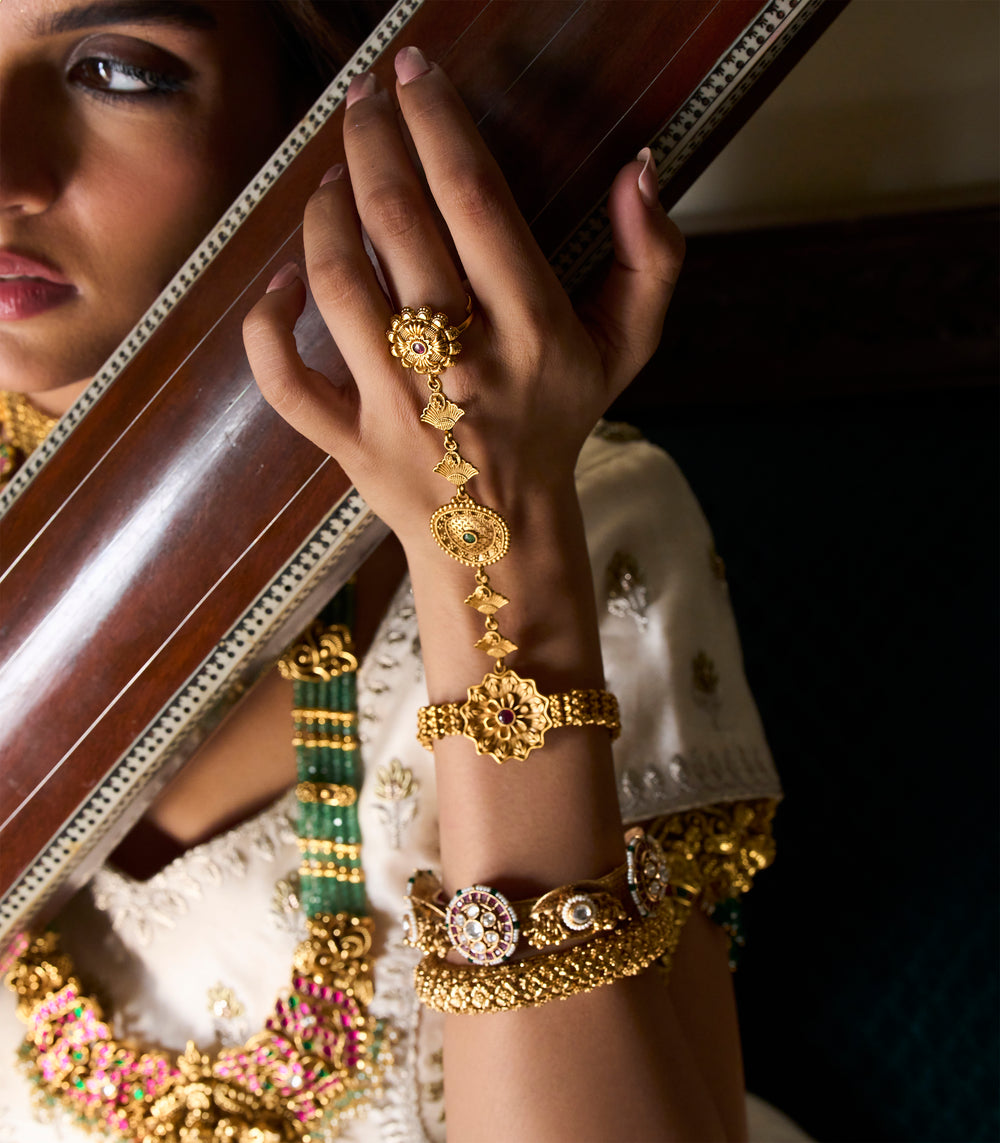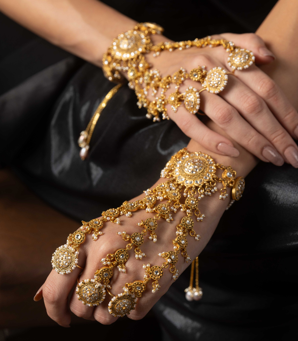 Elevate your bridal and festive look with Preeti Mohan’s handcrafted artificial hand jewellery. Explore premium artificial rings, bracelets, bangles, hathphool, kalire, and bajubandh—designed to add a touch of tradition and glamour.