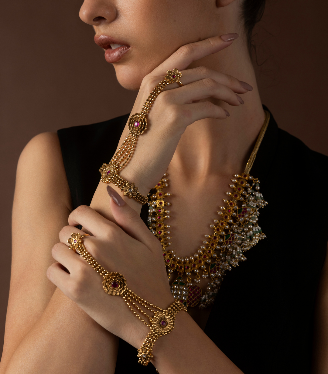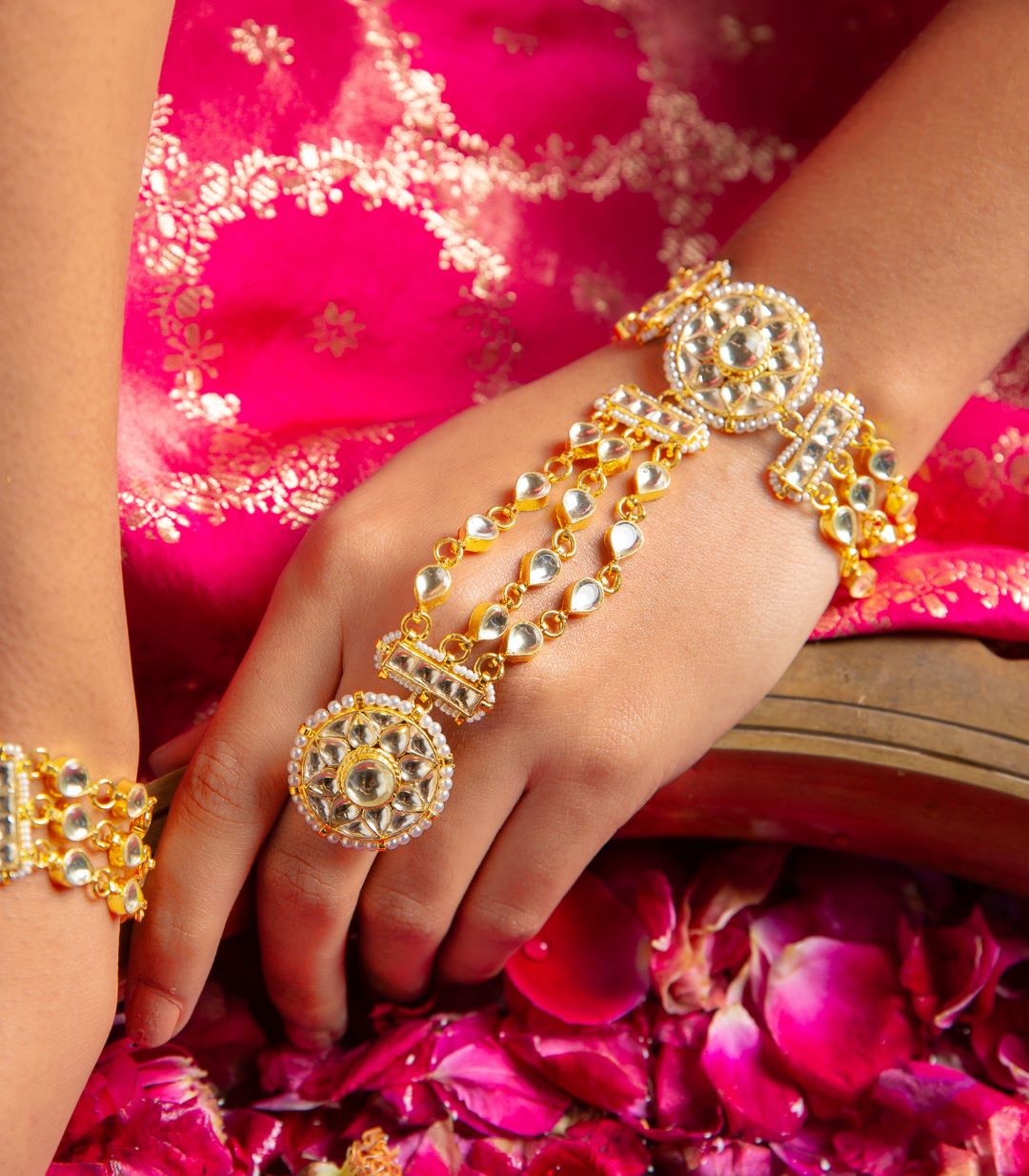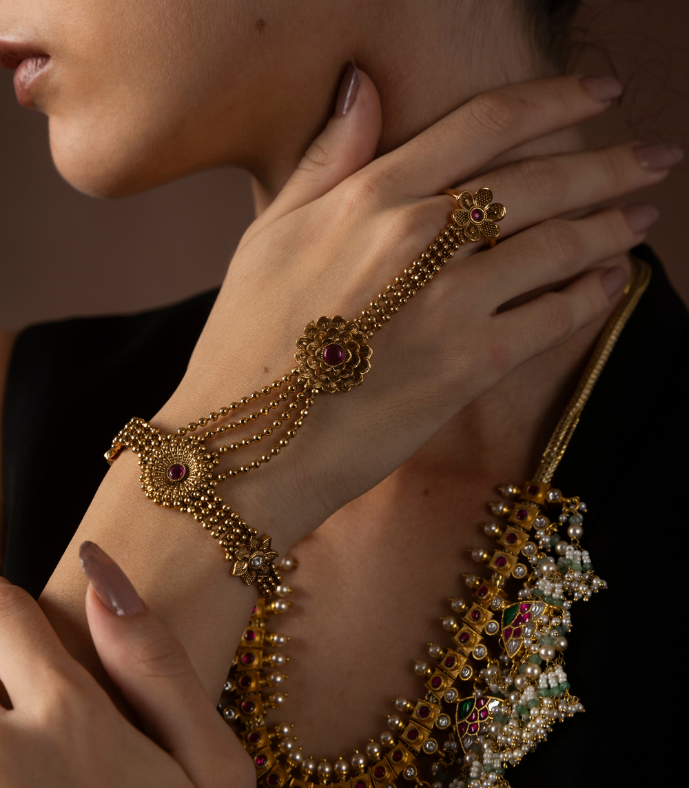 Elevate your bridal and festive look with Preeti Mohan’s handcrafted artificial hand jewellery. Explore premium artificial rings, bracelets, bangles, hathphool, kalire, and bajubandh—designed to add a touch of tradition and glamour.