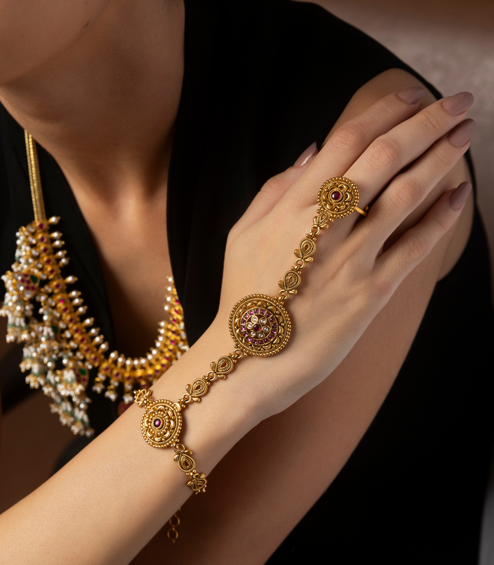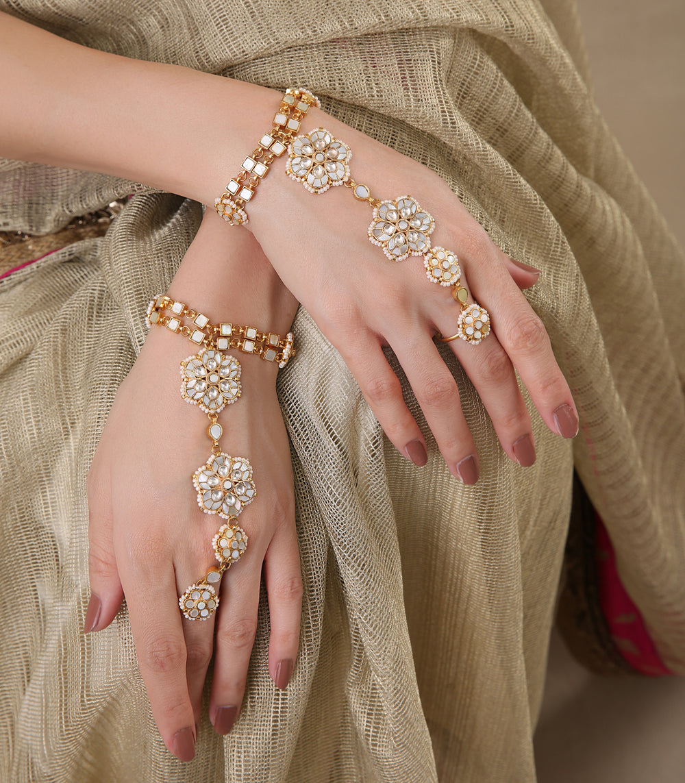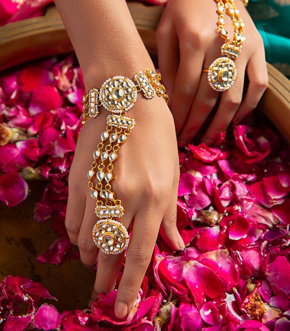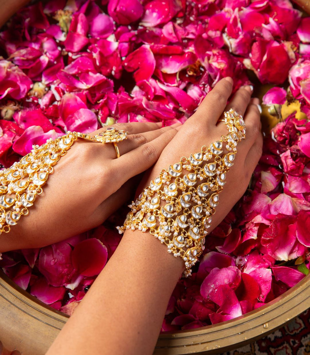 Perfect hand jewellery accessories for bride, wedding, and special occasions, each piece is intricately crafted using premium artificial jewellery materials.