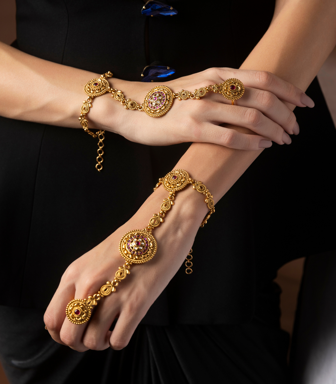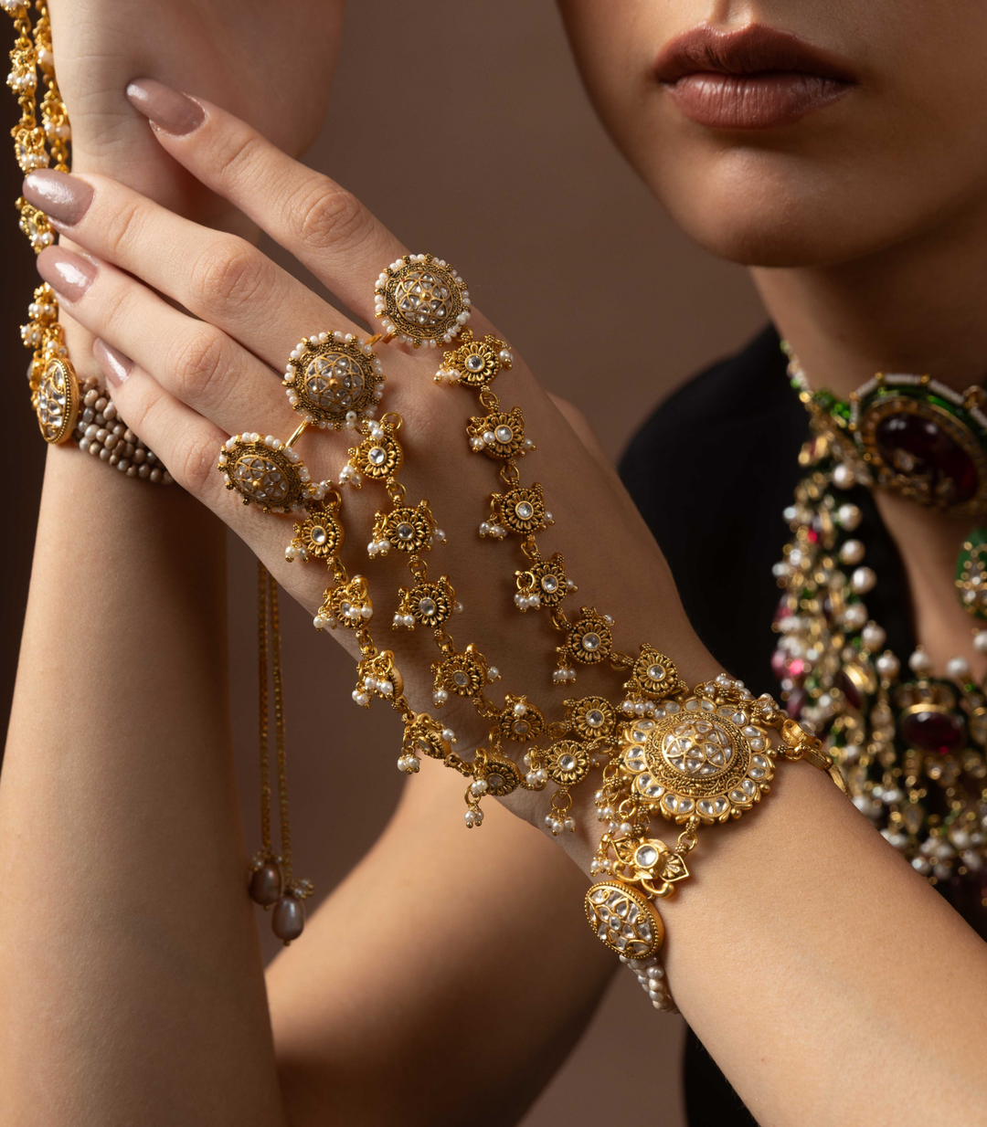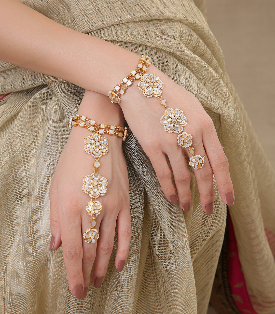 Perfect hand jewellery accessories for bride, wedding, and special occasions, each piece is intricately crafted using premium artificial jewellery materials.