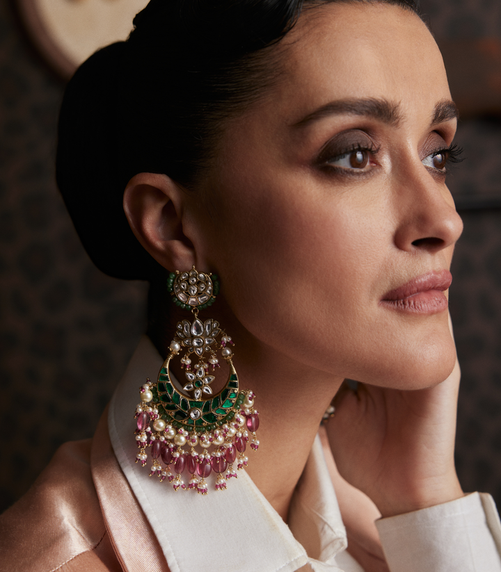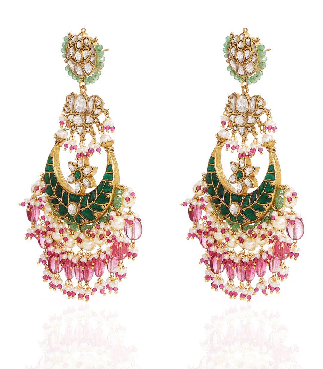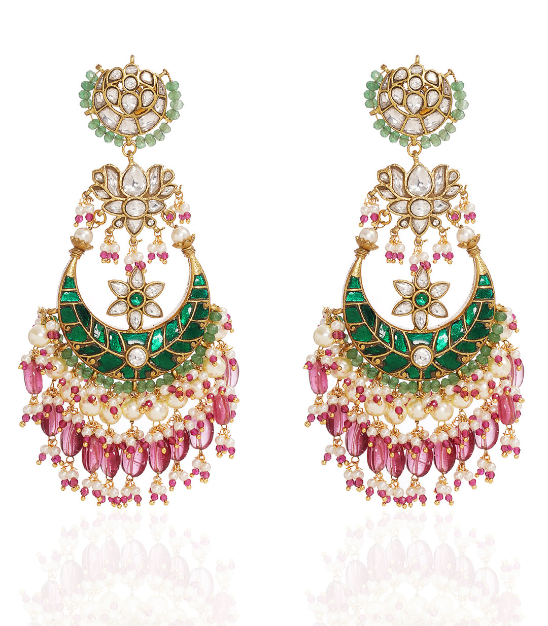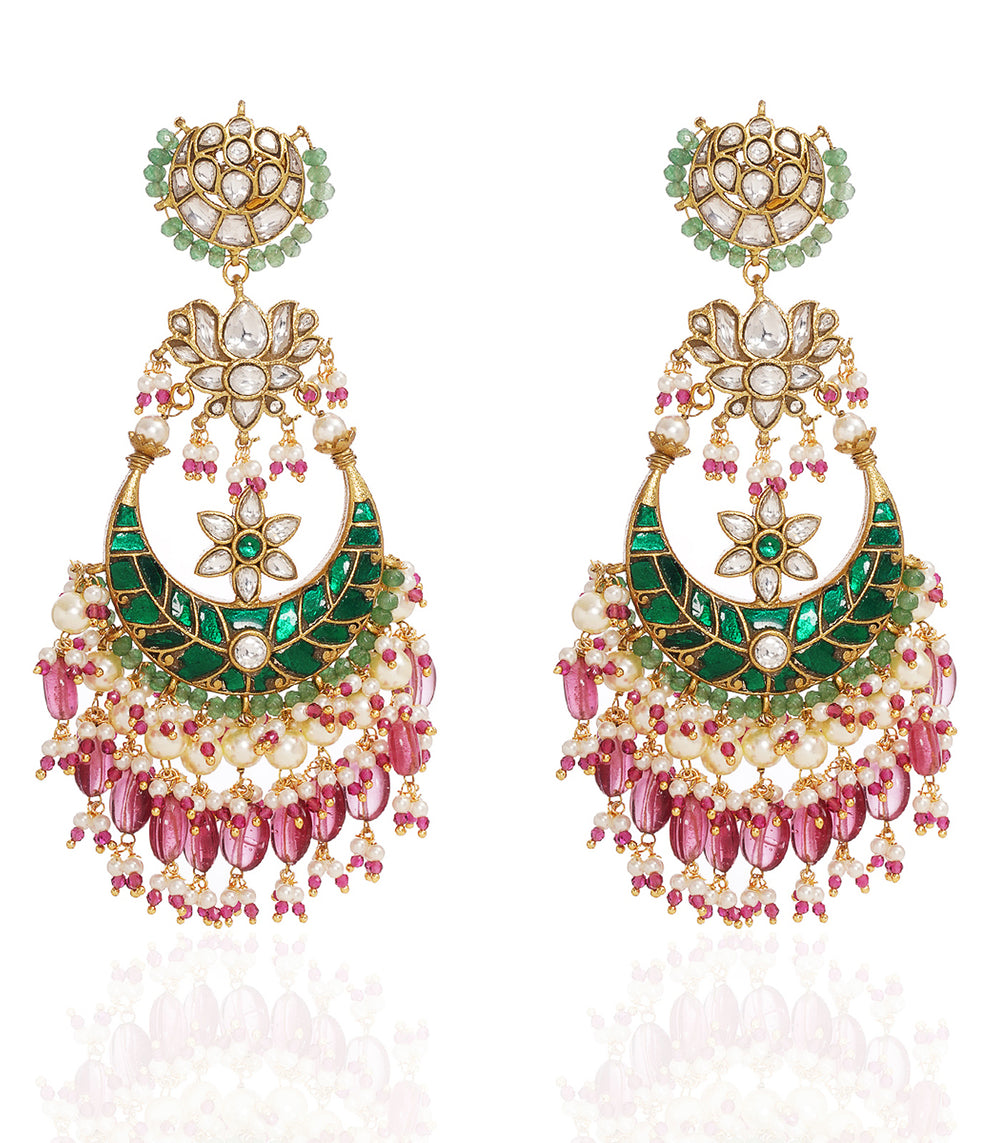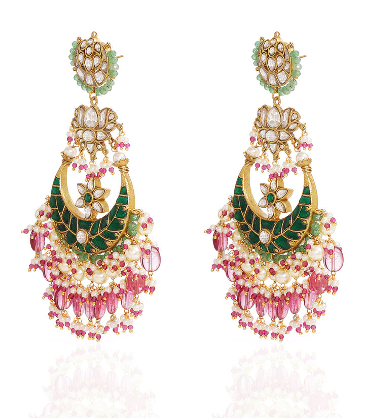 PRANAYA GREEN & PINK KUNDAN CHANDBALI