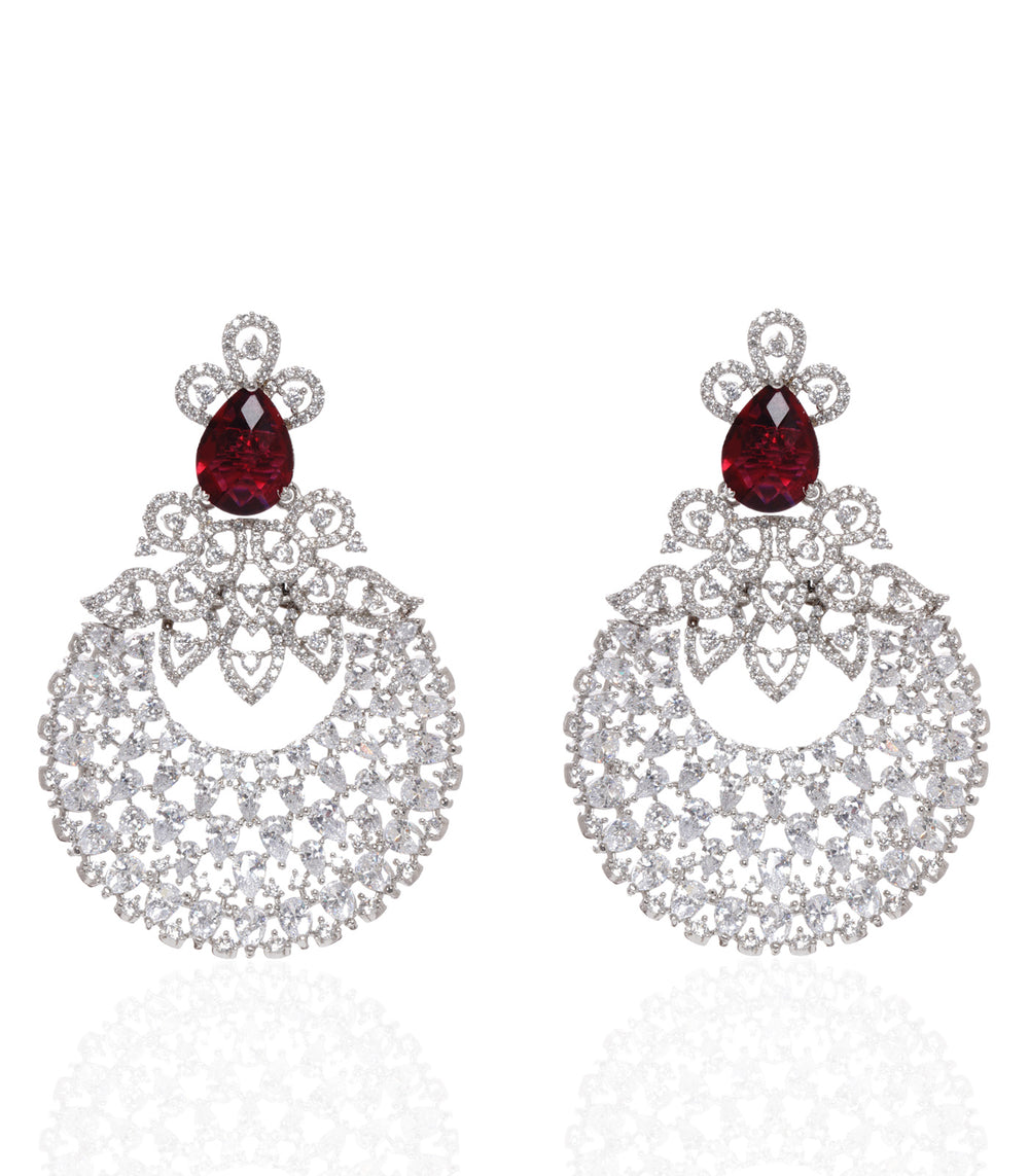 SILVER RUBY ZIRCON CHARM CHANDBALI EARRING