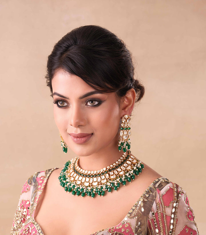 AZHA GREEN GOLD PLATED MOISSANITE NECKLACE SET