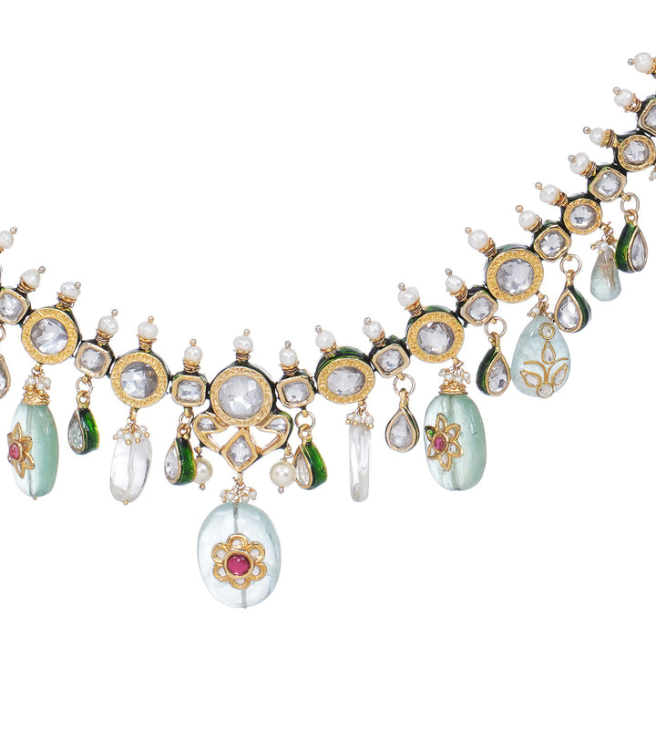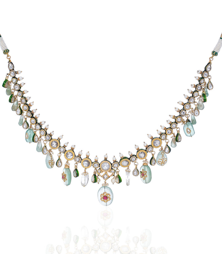 WAKEETA GREEN KUNDAN LONG NECKLACE