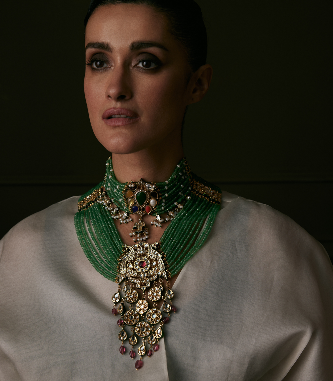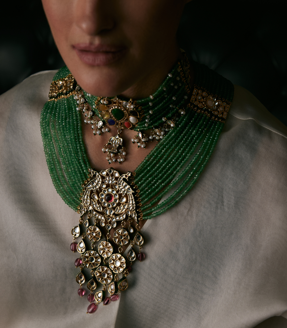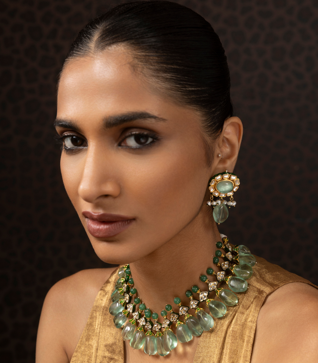 CLAIRE GREEN KUNDAN LONG NECKLACE