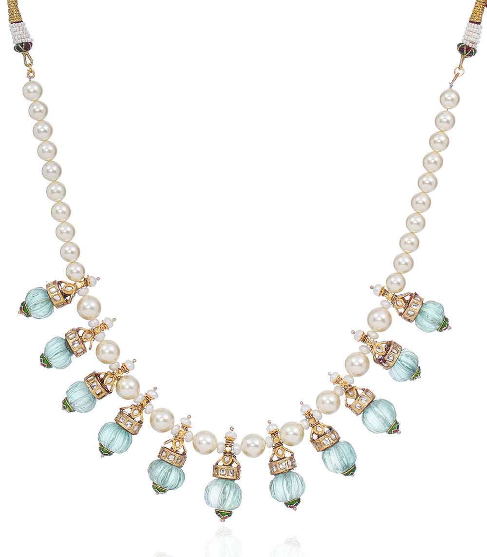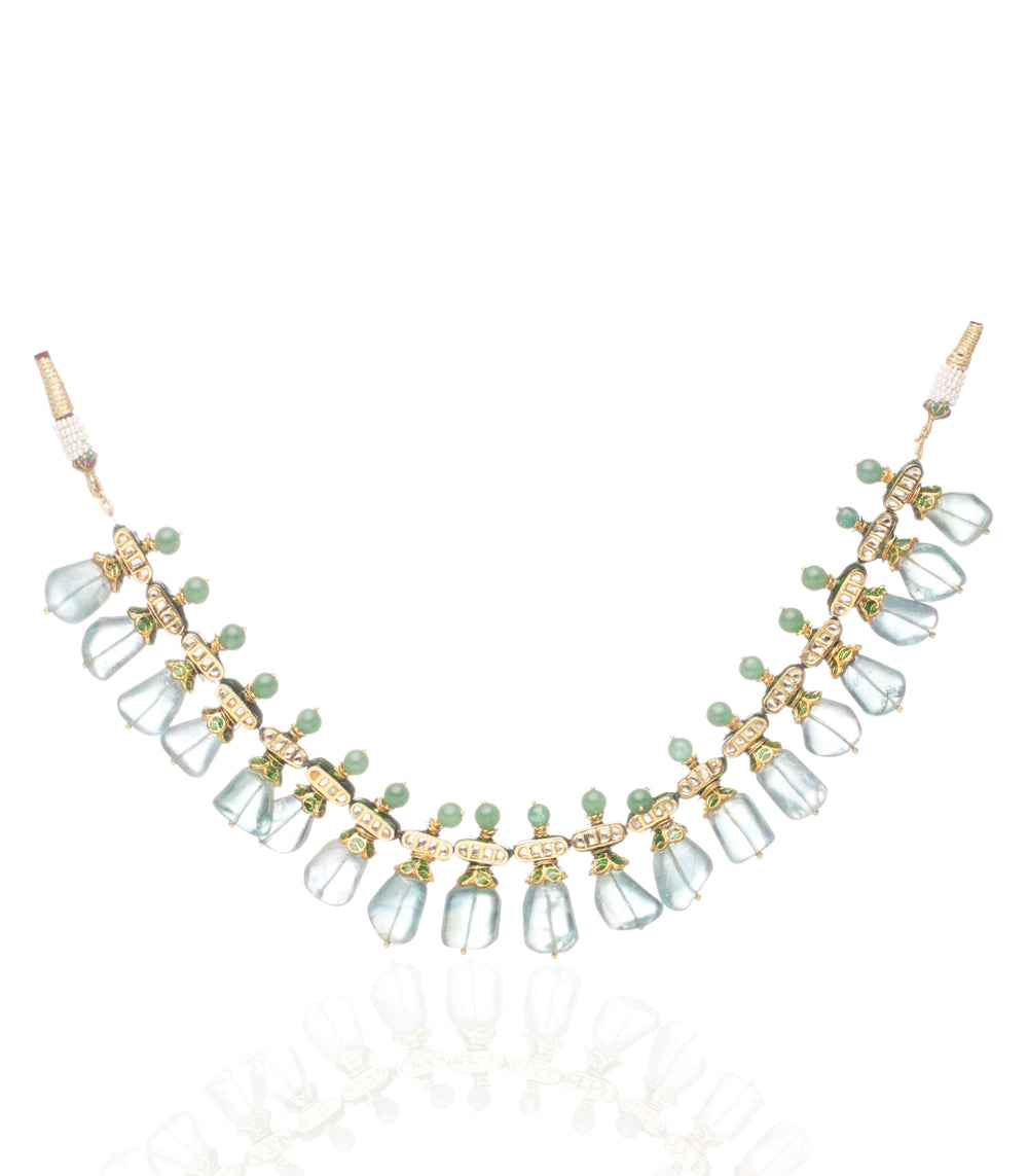 GAURIKA BLUE & REEN KUNDAN LONG NECKLACE