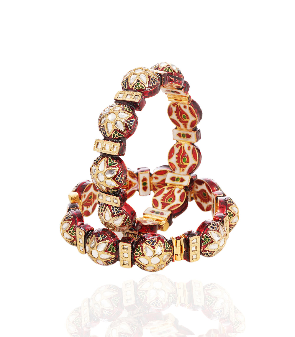 UDYATI GOLD PLATED PINK FLOWER MEENA BANGLES
