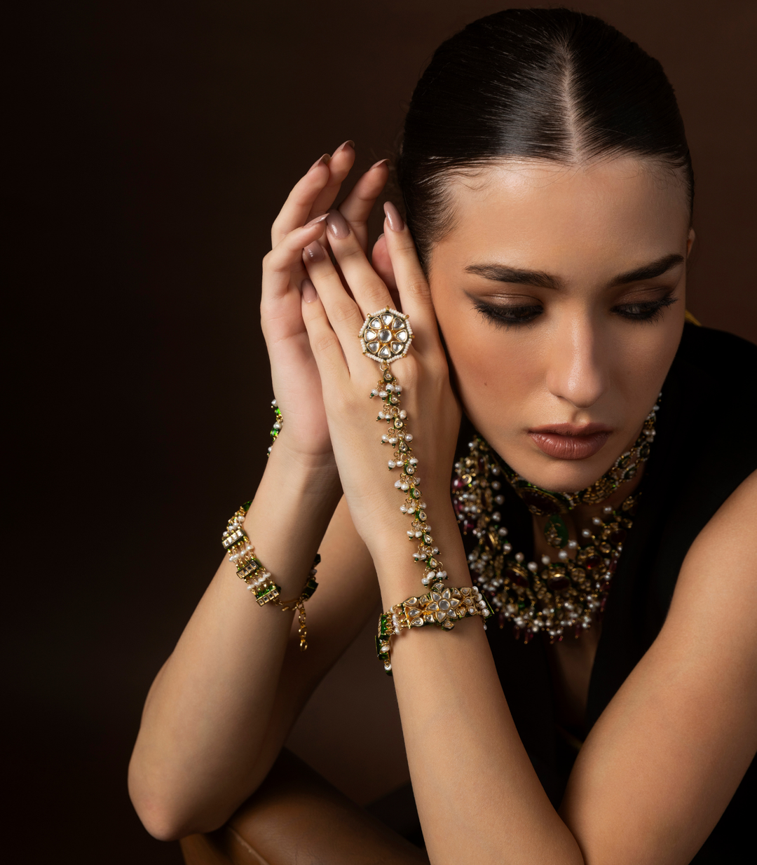 ESHNI GREEN KUNDAN HATHPHOOLS
