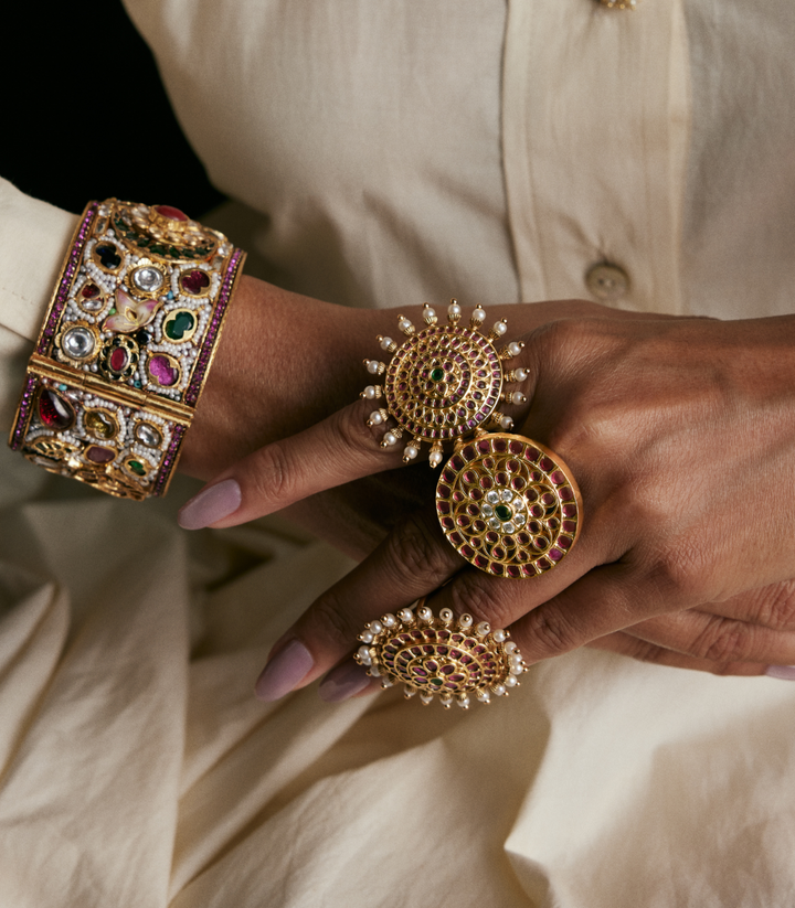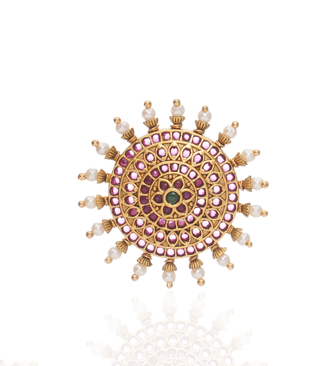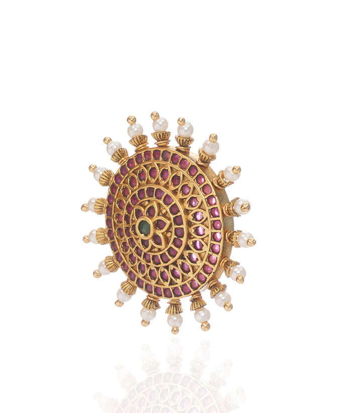 MANDALA RED & GREEN KUNDAN RING