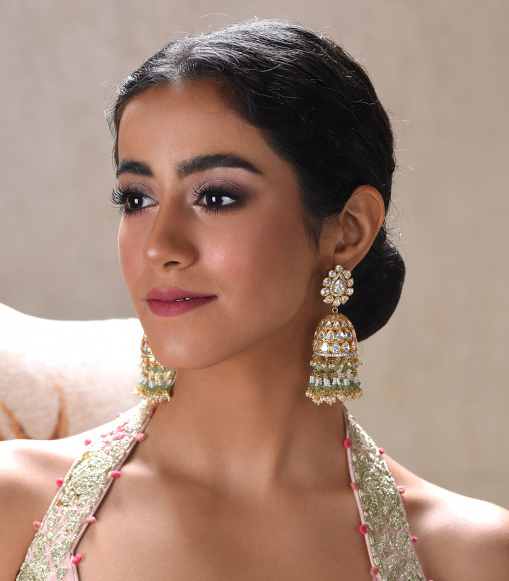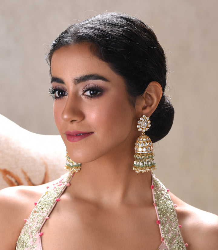 APRAJITA GREEN MOISSANITE JHUMKA WITH WHITE & GREEN DROPS