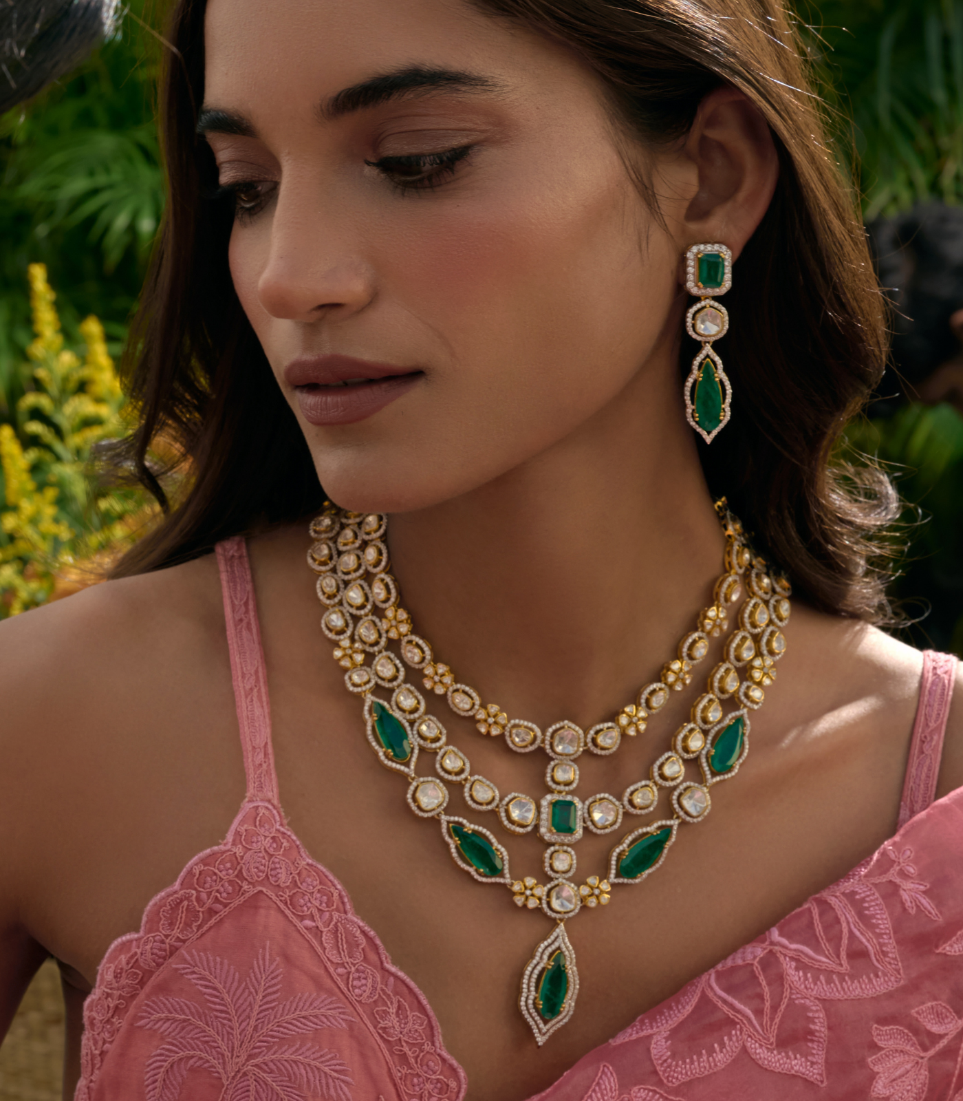 GEETIKA GREEN MOISSANITE LONG NECKLACE
