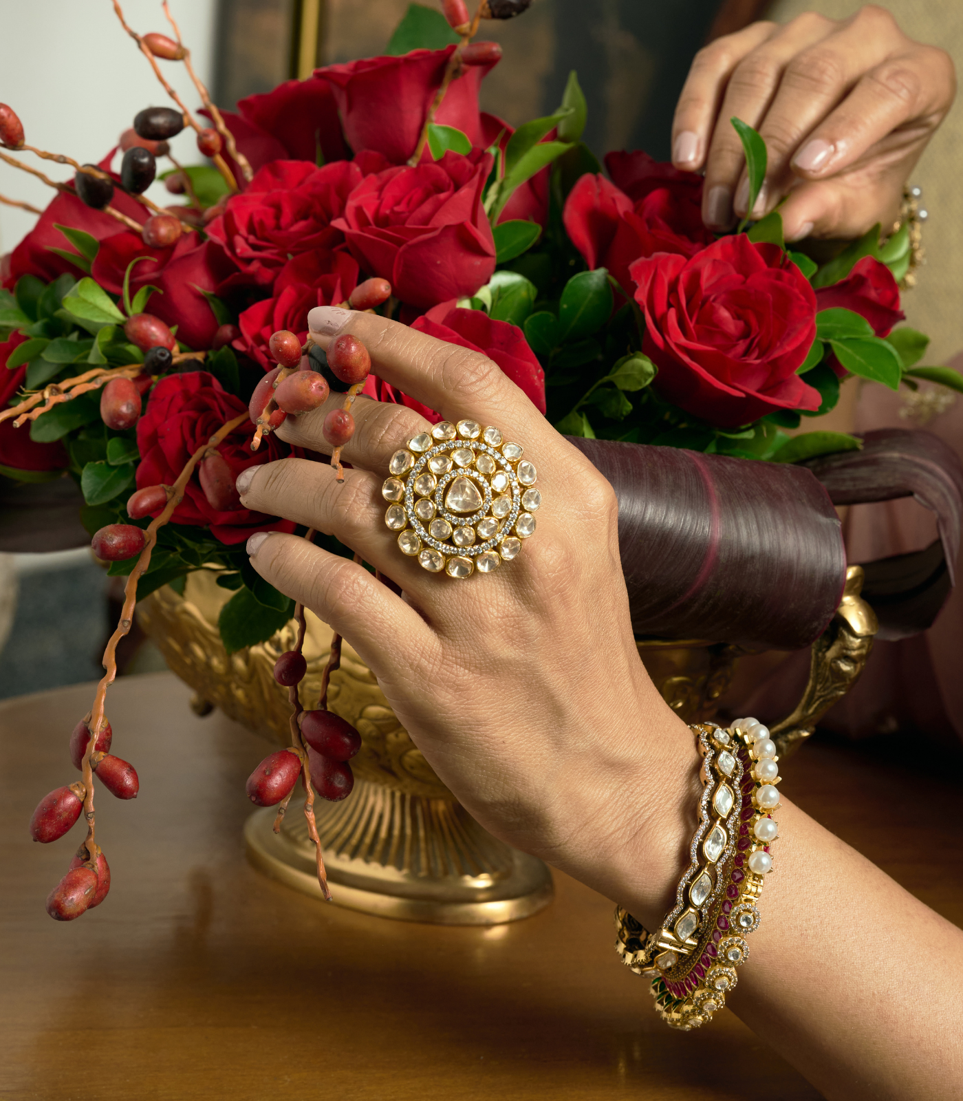 Illuminate your style with our Moissanite Stone Ring. A shiny testament to elegance, this piece with gold finish is inspired by the Flower of Life, adding a touch of intricate beauty to your look.