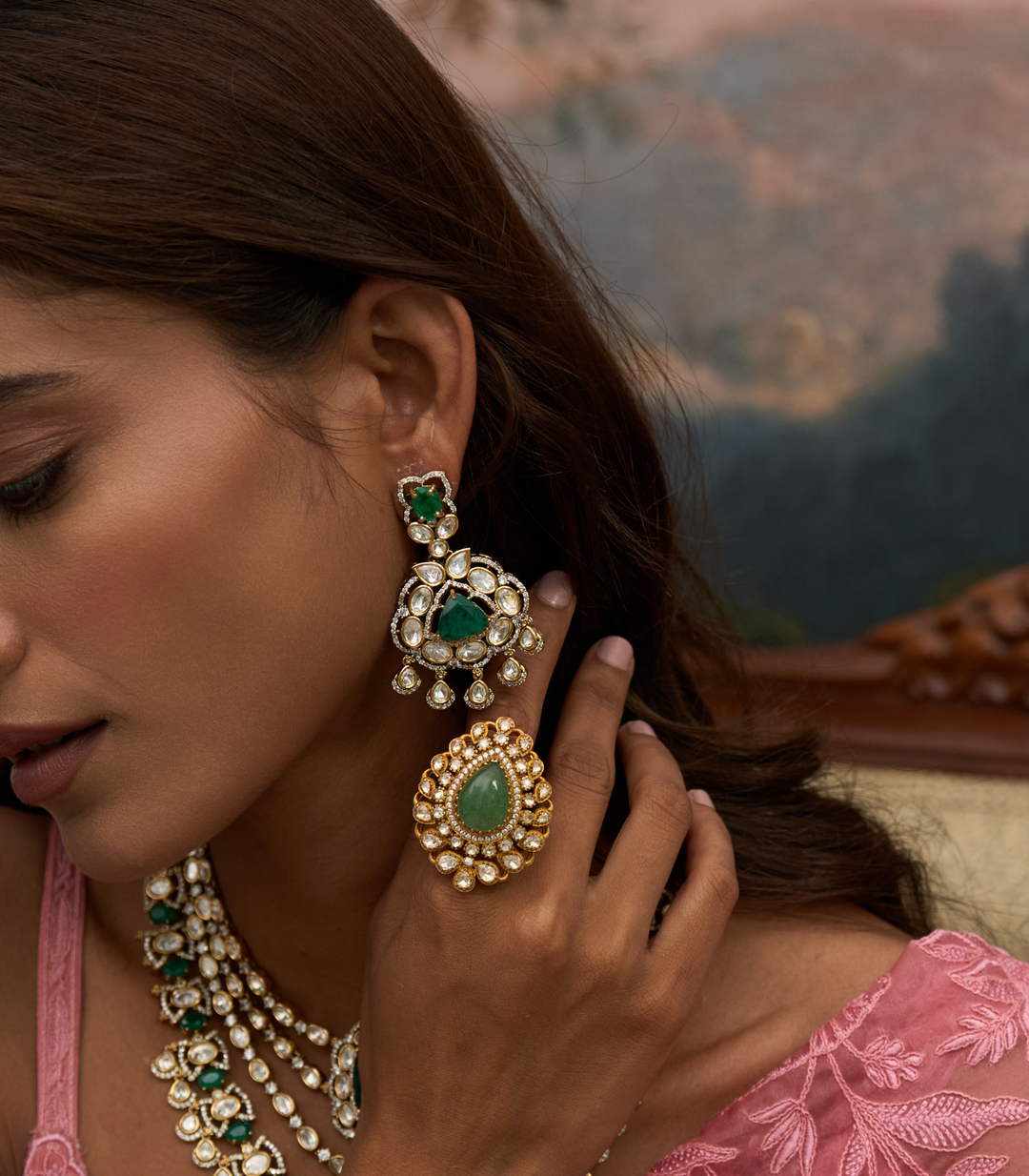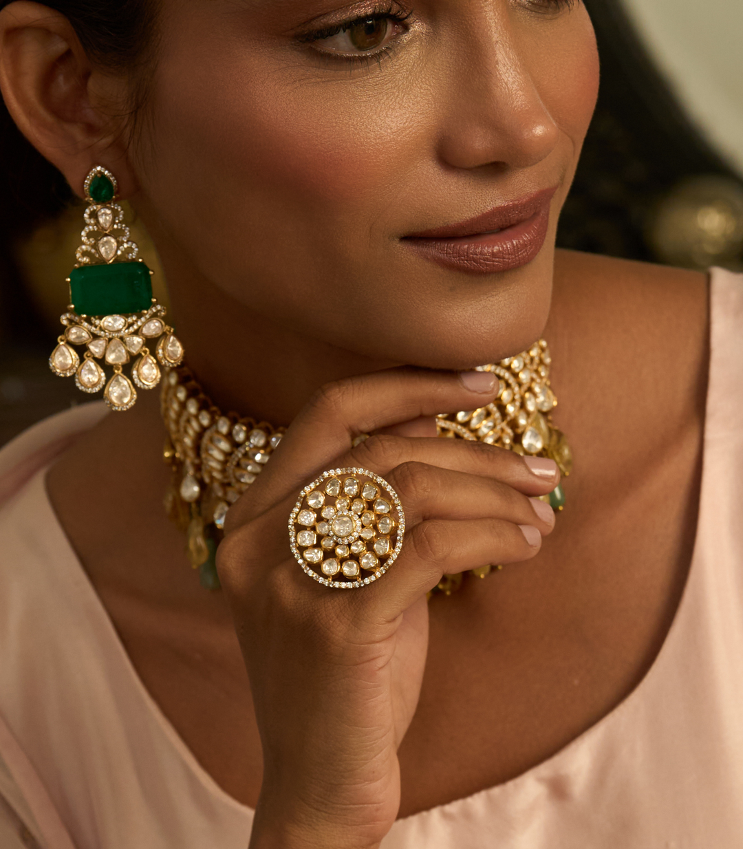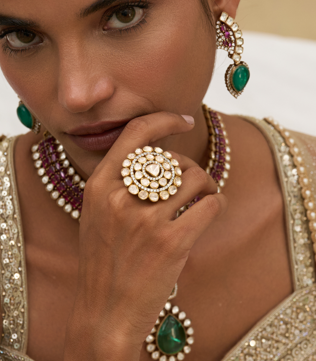 SADHIKA GREEN POLKI RING