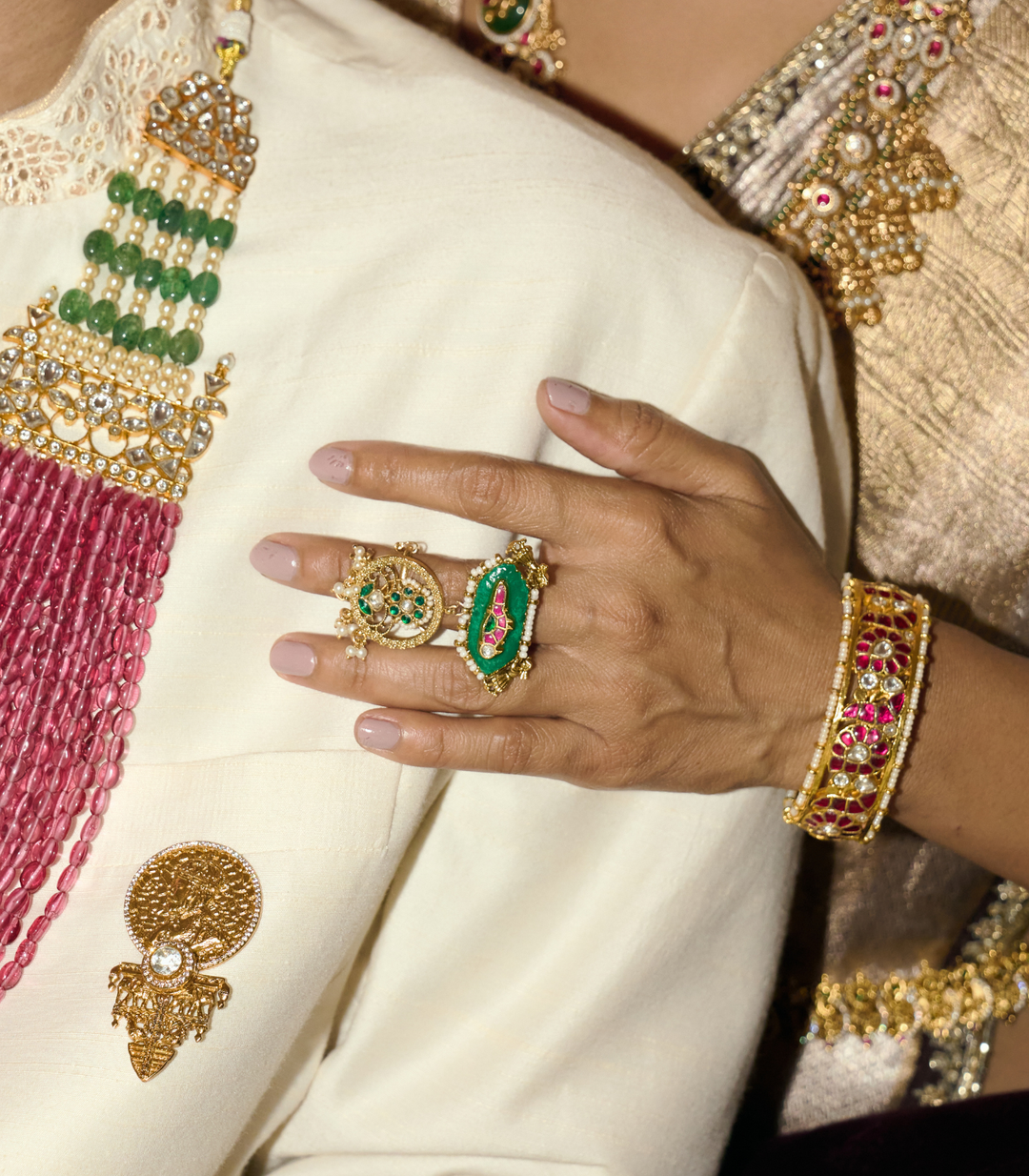 MANSI RED & GREEN KUNDAN RING