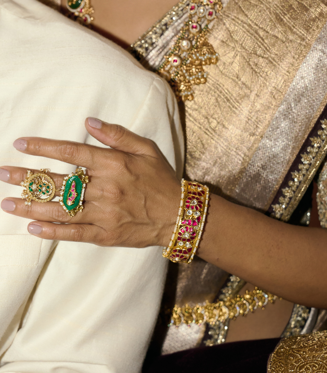 NAVYA RED & GREEN KUNDAN BANGLE