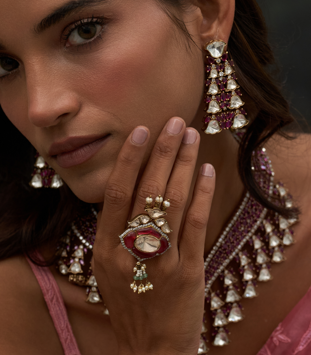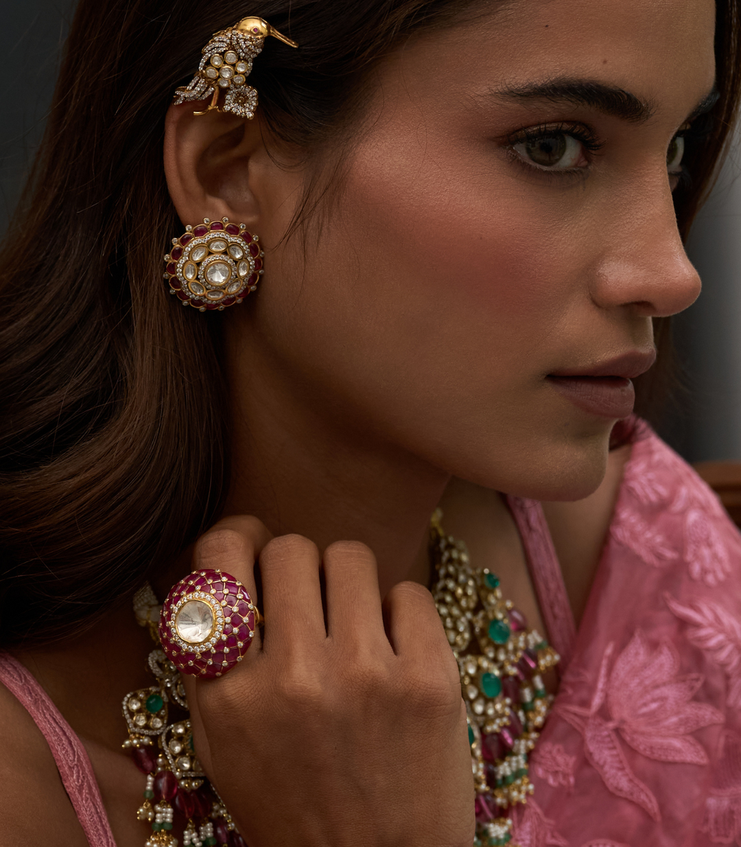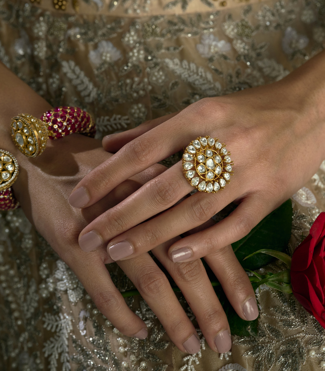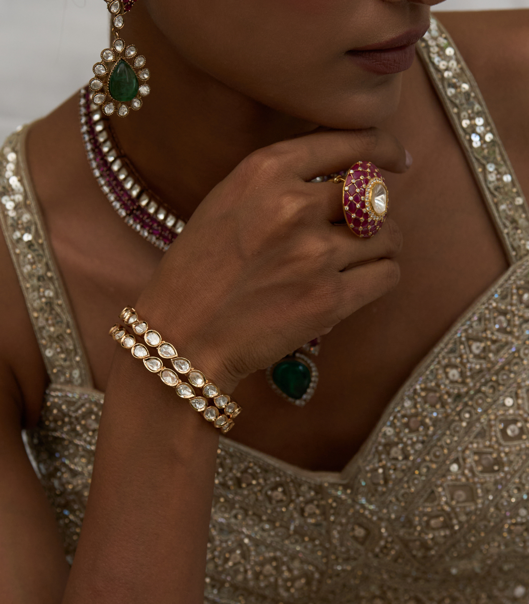 BHUMI RED & GREEN KUNDAN RING