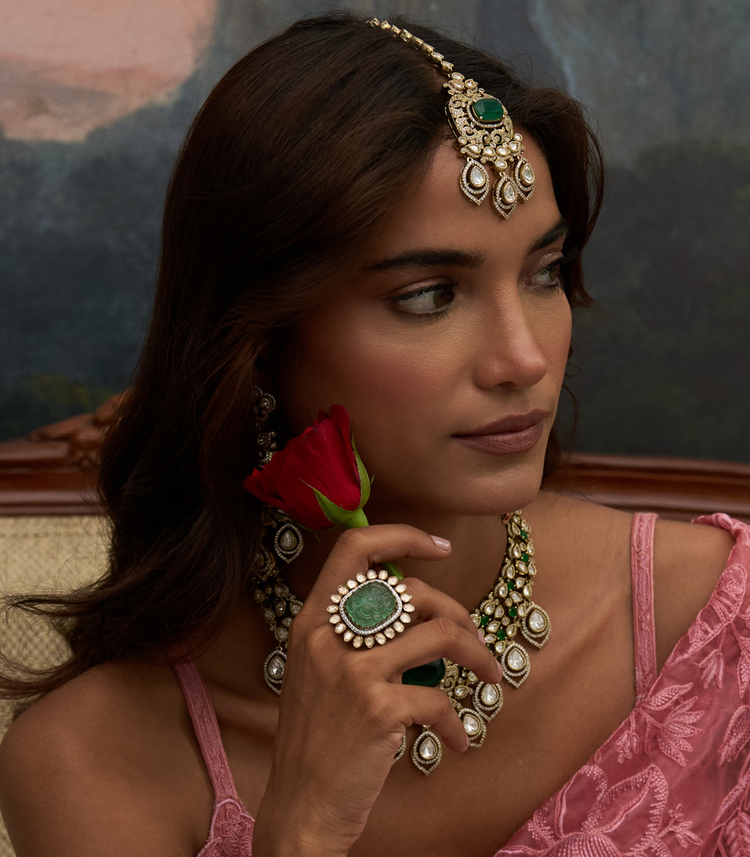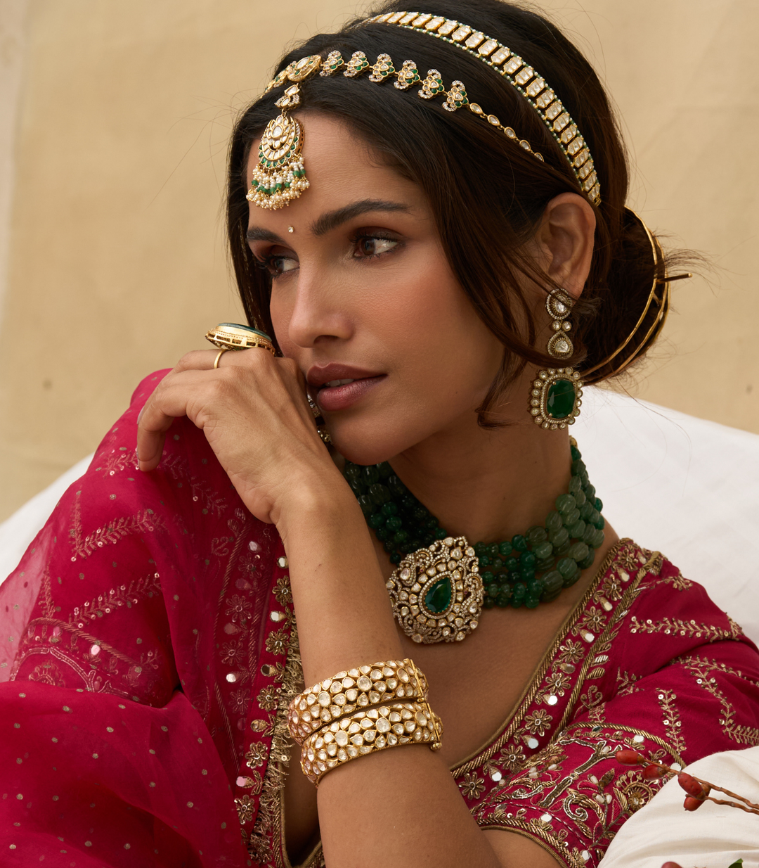 URMILA RED & GREEN KUNDAN TIKKA