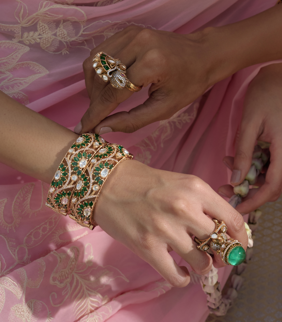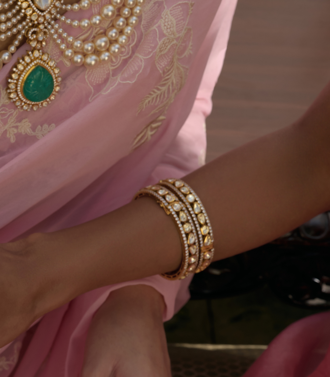 VAIDEHI GREEN & PINK POLKI BANGLES