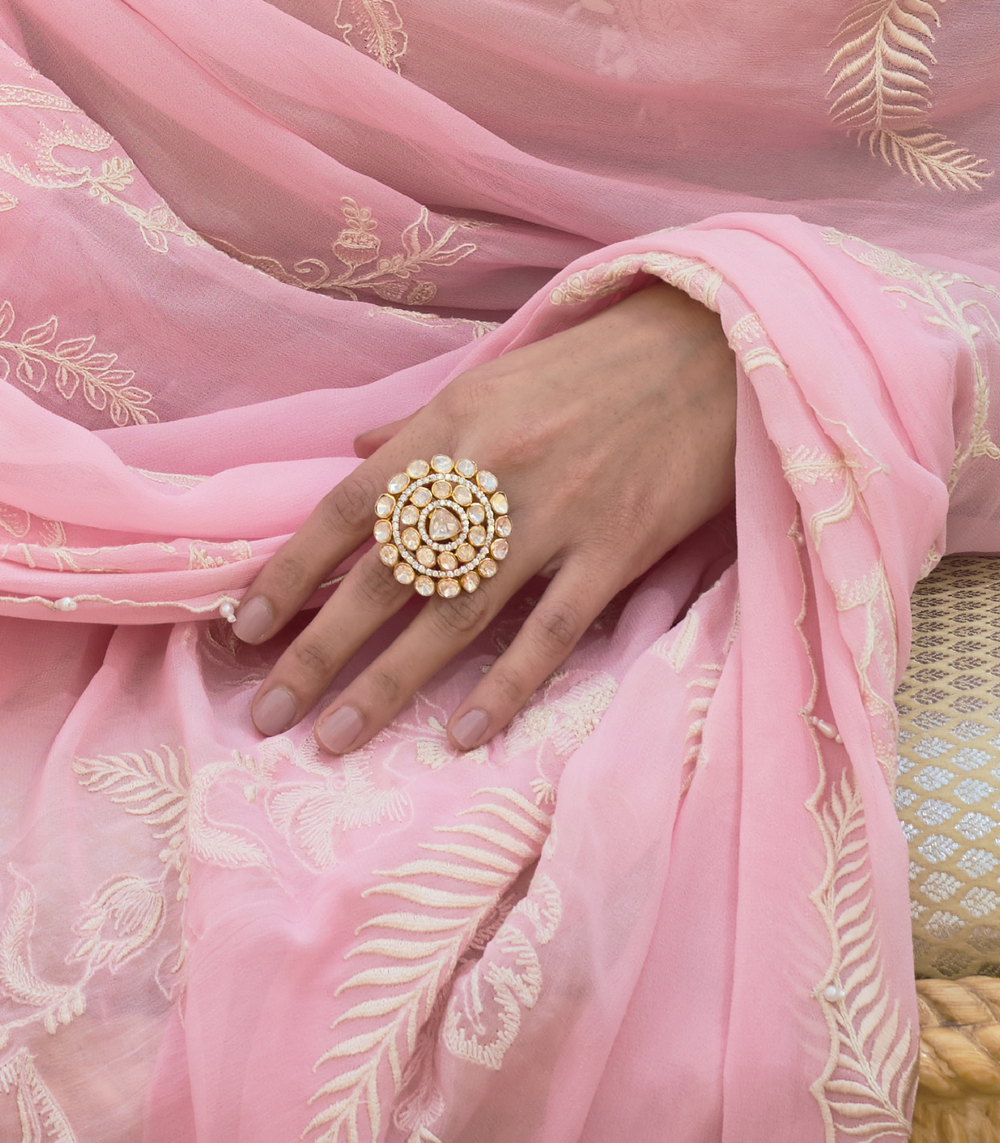 NIHARIKA GOLD PLATED KUNDAN RING