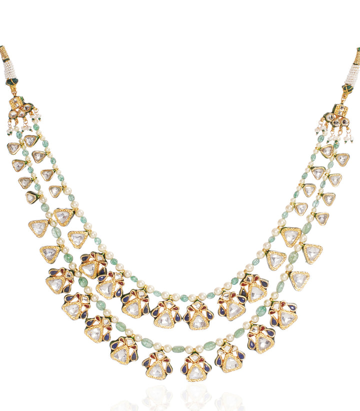 GAURIKA BLUE & REEN KUNDAN LONG NECKLACE