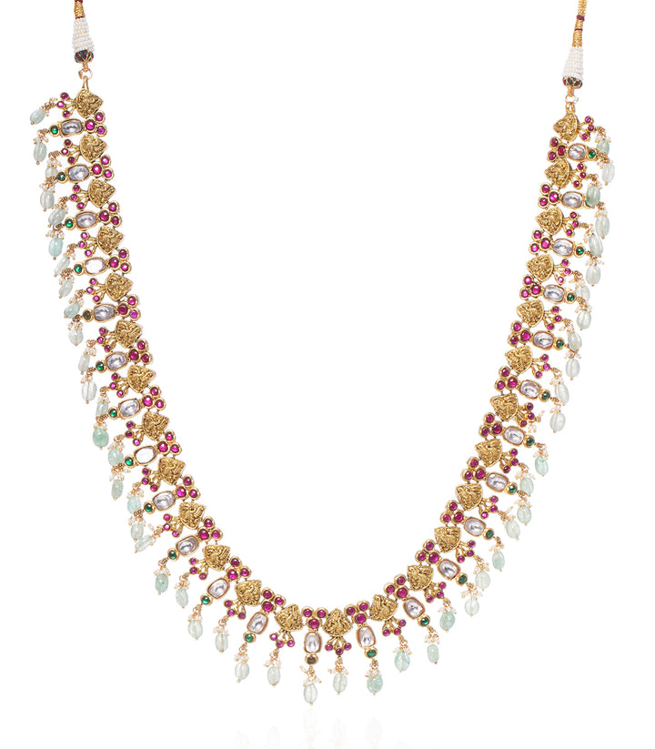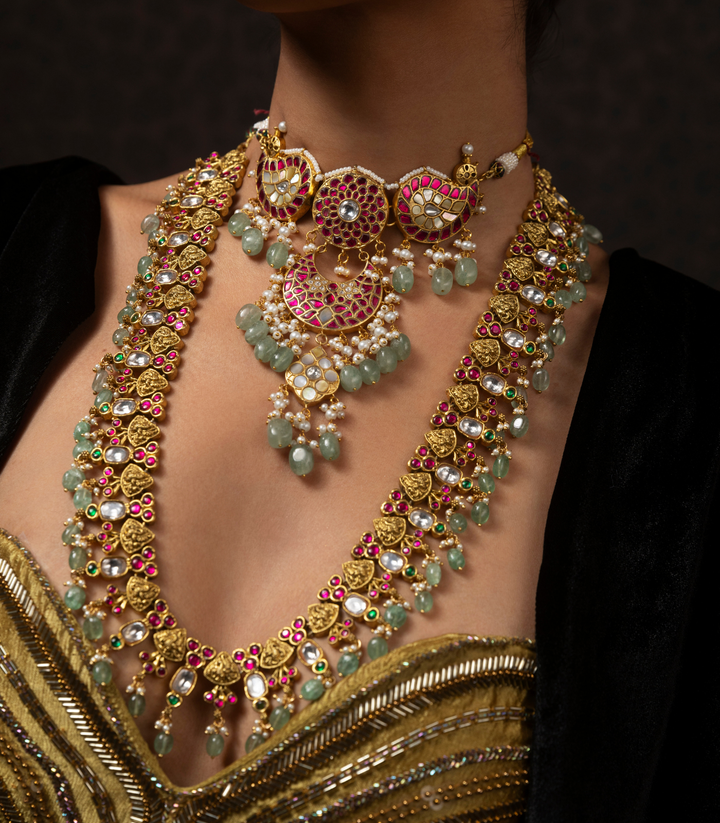 GAYATRI RED & GREEN KUNDAN LONG NECKLACE