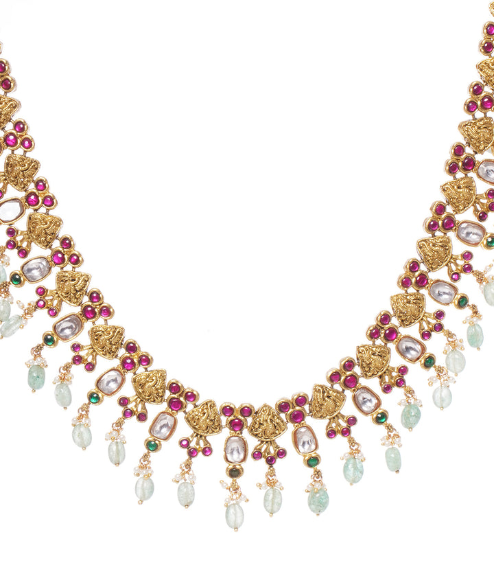 GAYATRI RED & GREEN  KUNDAN LONG NECKLACE