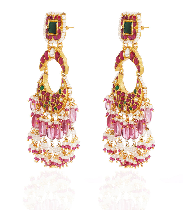 JIVISHA RED & GREEN KUNDAN CHANDBALI