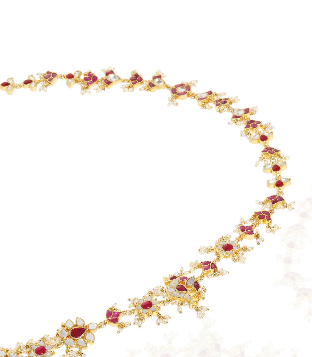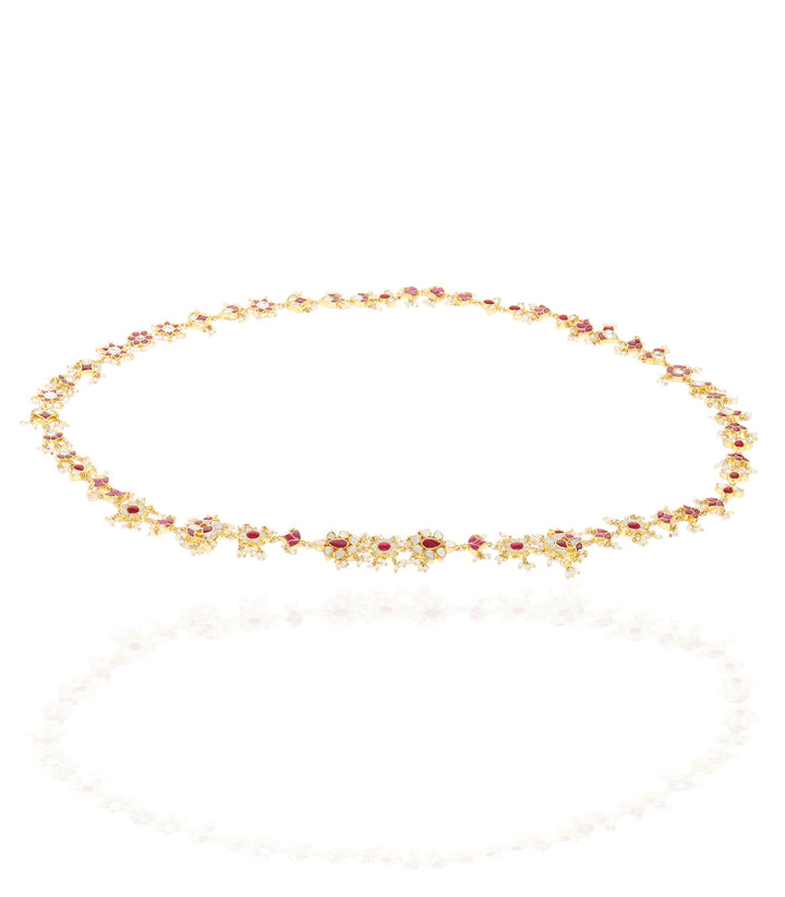 Cherish enchantment with our Gold-Plated Hair Accessory, featuring vibrant red Kundan pieces that add a touch of sparkle to your locks. Elevate your hairstyle with a hint of glamour and a dash of radiant charm.