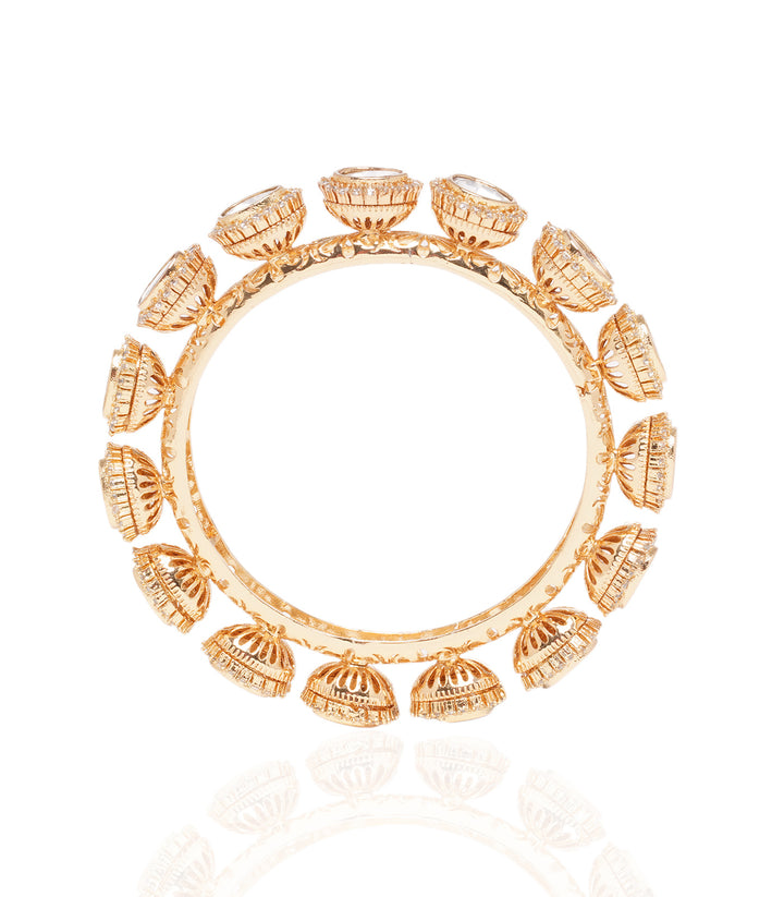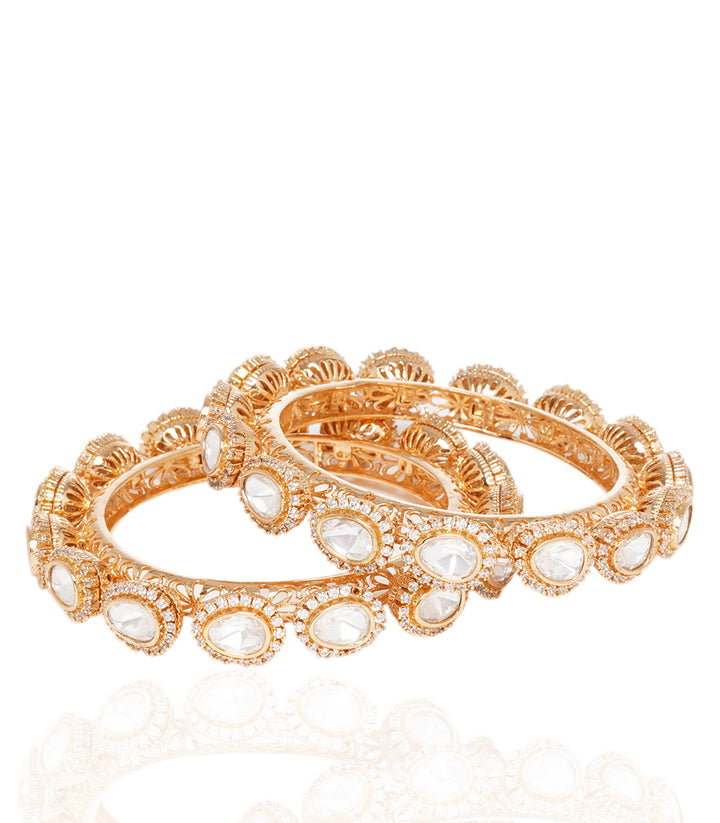 Encircle opulence with our Gold-Plated Kundan Bangles featuring grand Bhor-shaped Kundan pieces. This exquisite design elevates your style, adding a touch of regal charm to your wrists.