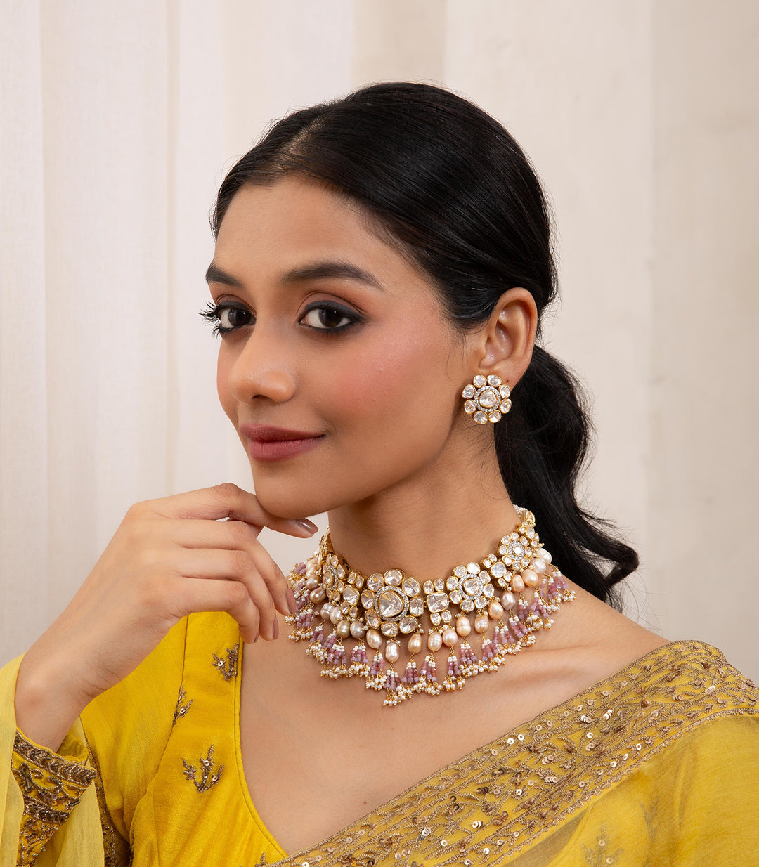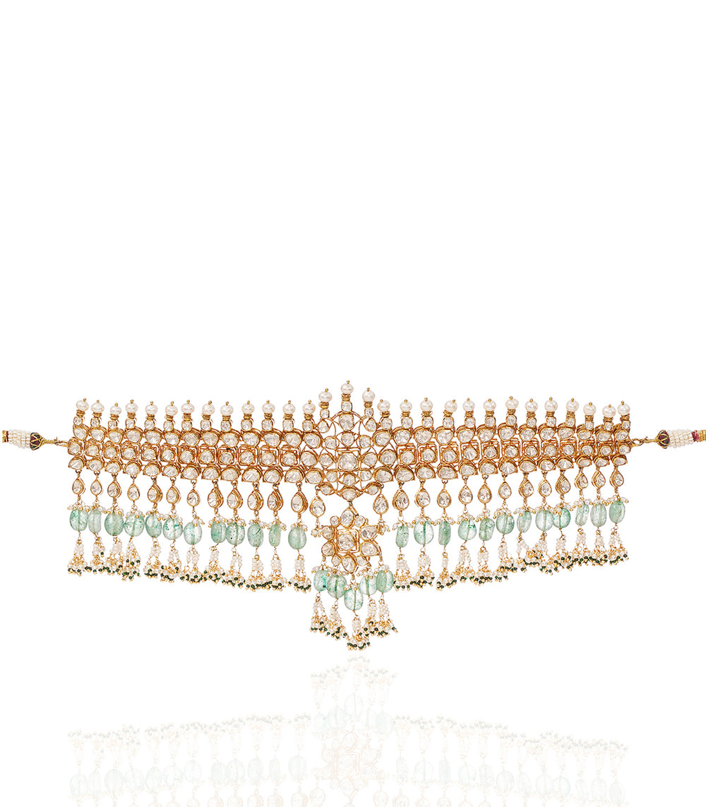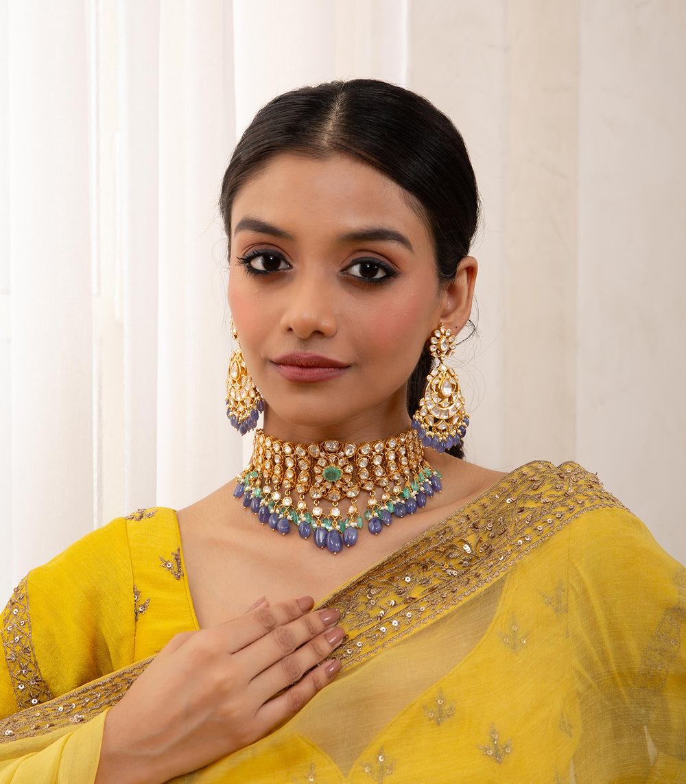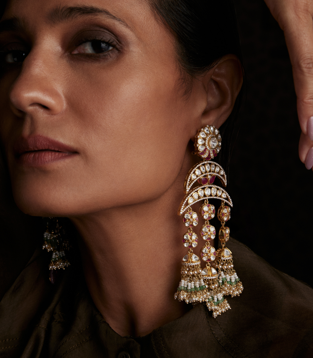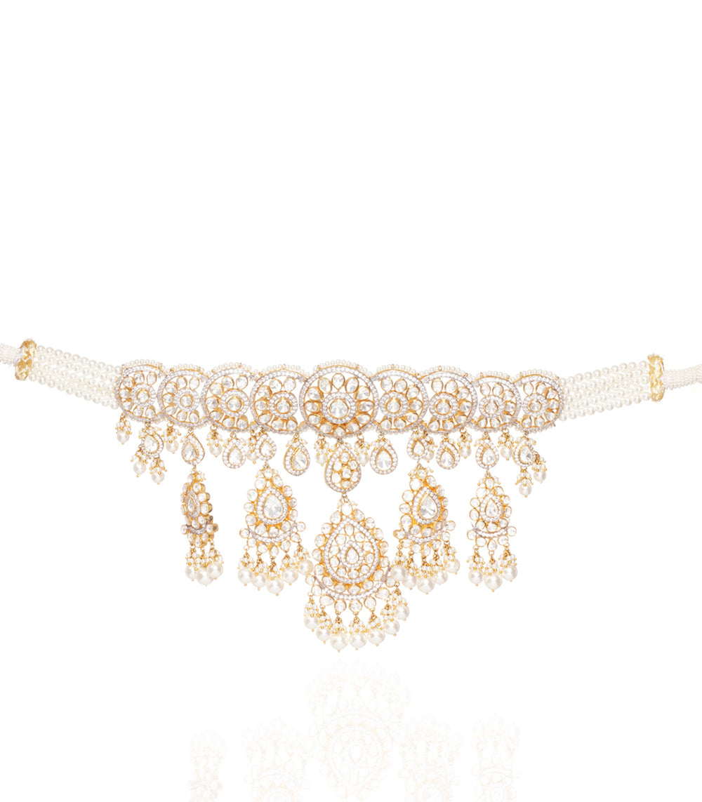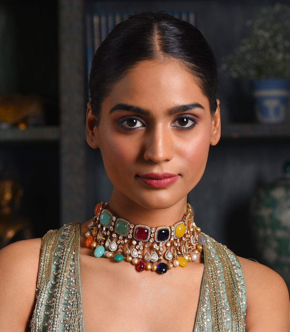 Moissanite jewellery, a dazzling alternative to traditional polki boasts exceptional brilliance and durability. Composed of silicon carbide, it offers a stunning play of light, making it a popular and affordable choice for fine jewellery.