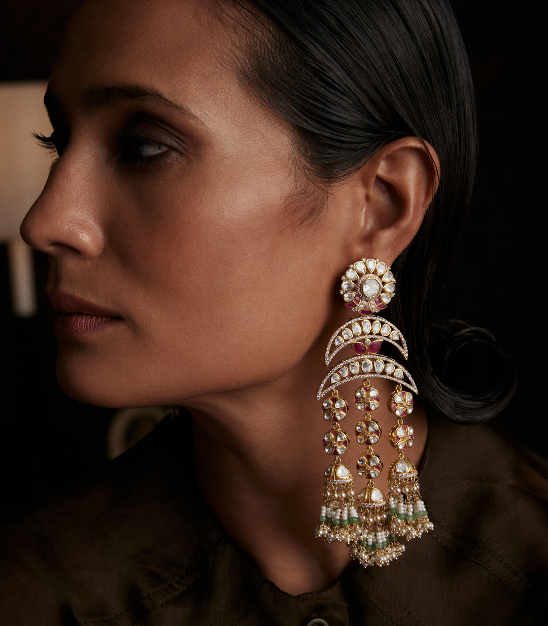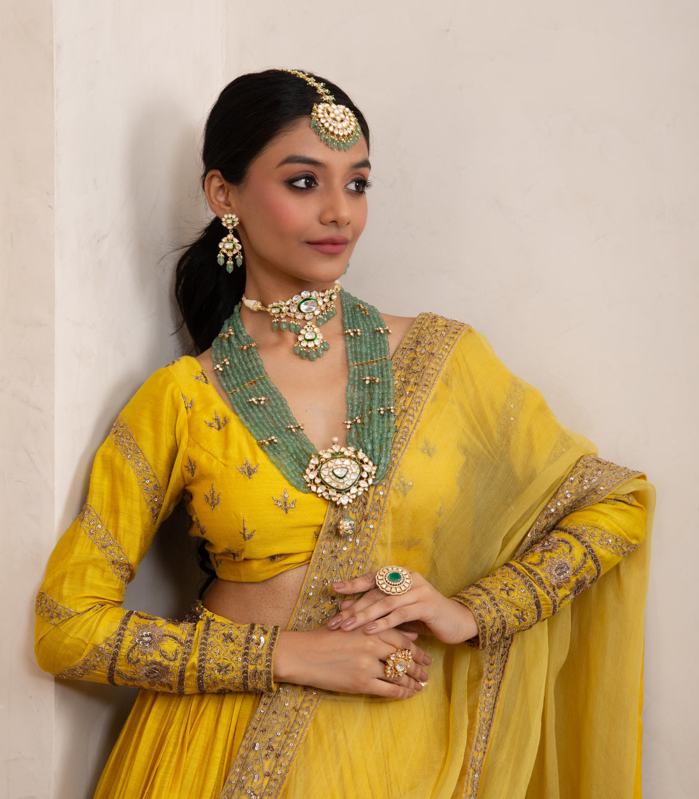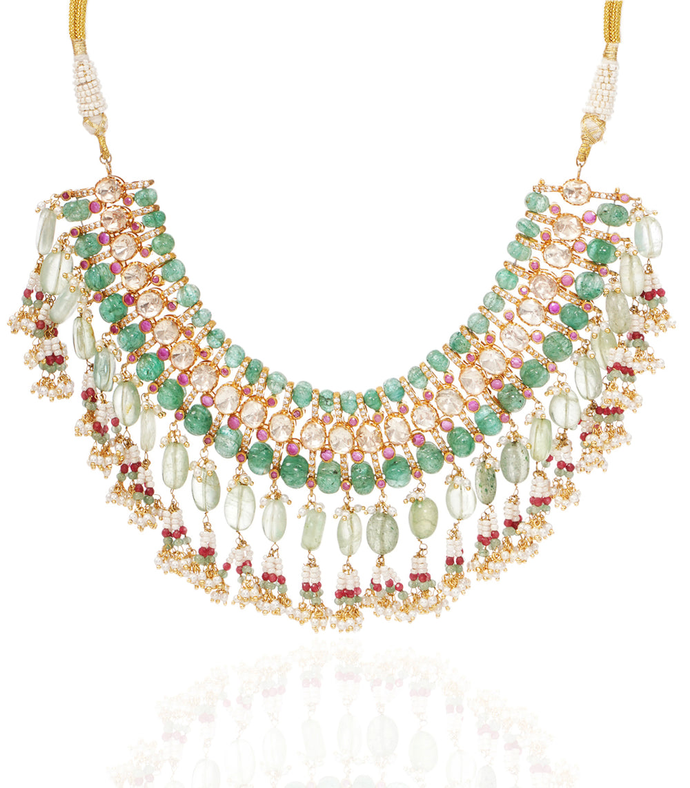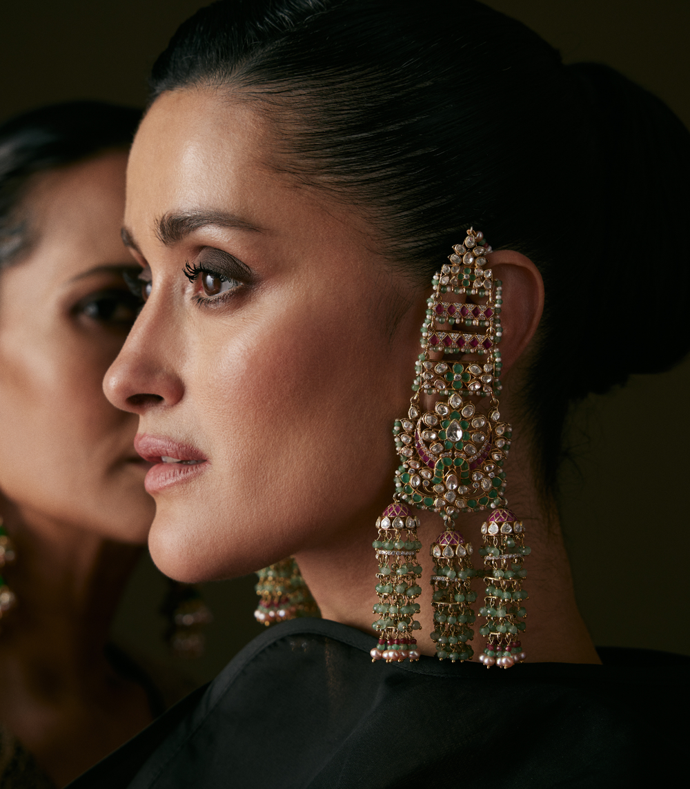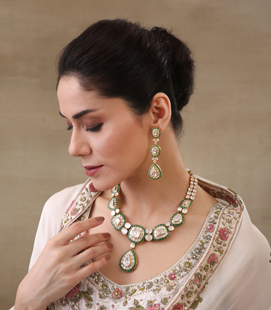 Moissanite jewellery, a dazzling alternative to traditional polki boasts exceptional brilliance and durability. Composed of silicon carbide, it offers a stunning play of light, making it a popular and affordable choice for fine jewellery.