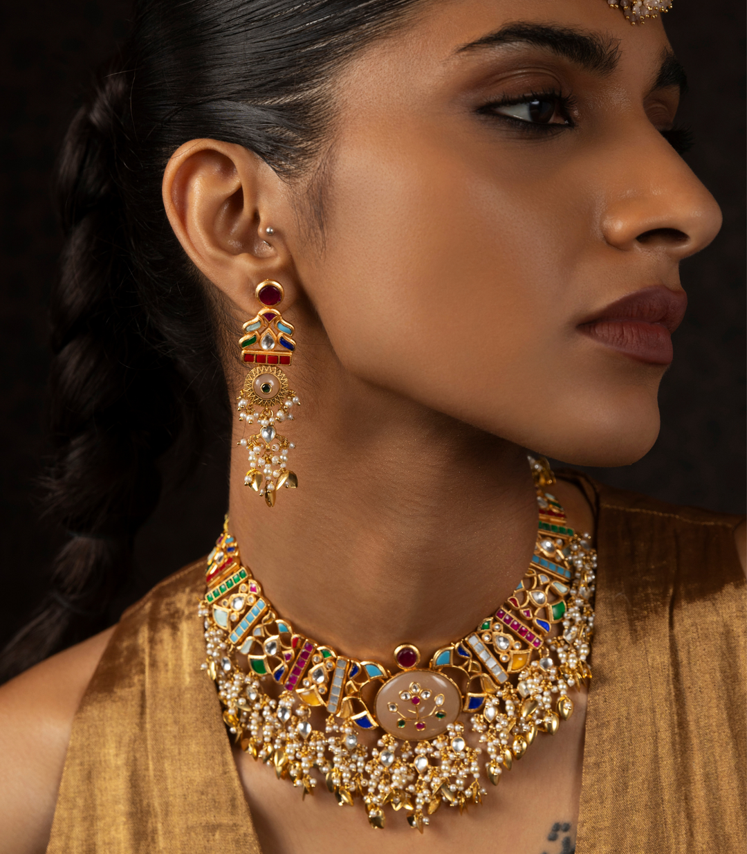 the reign of Akbar, known for his appreciation of art, culture, and fine craftsmanship. Our Navratan jewelry is a fusion of ancient art and modern sophistication,