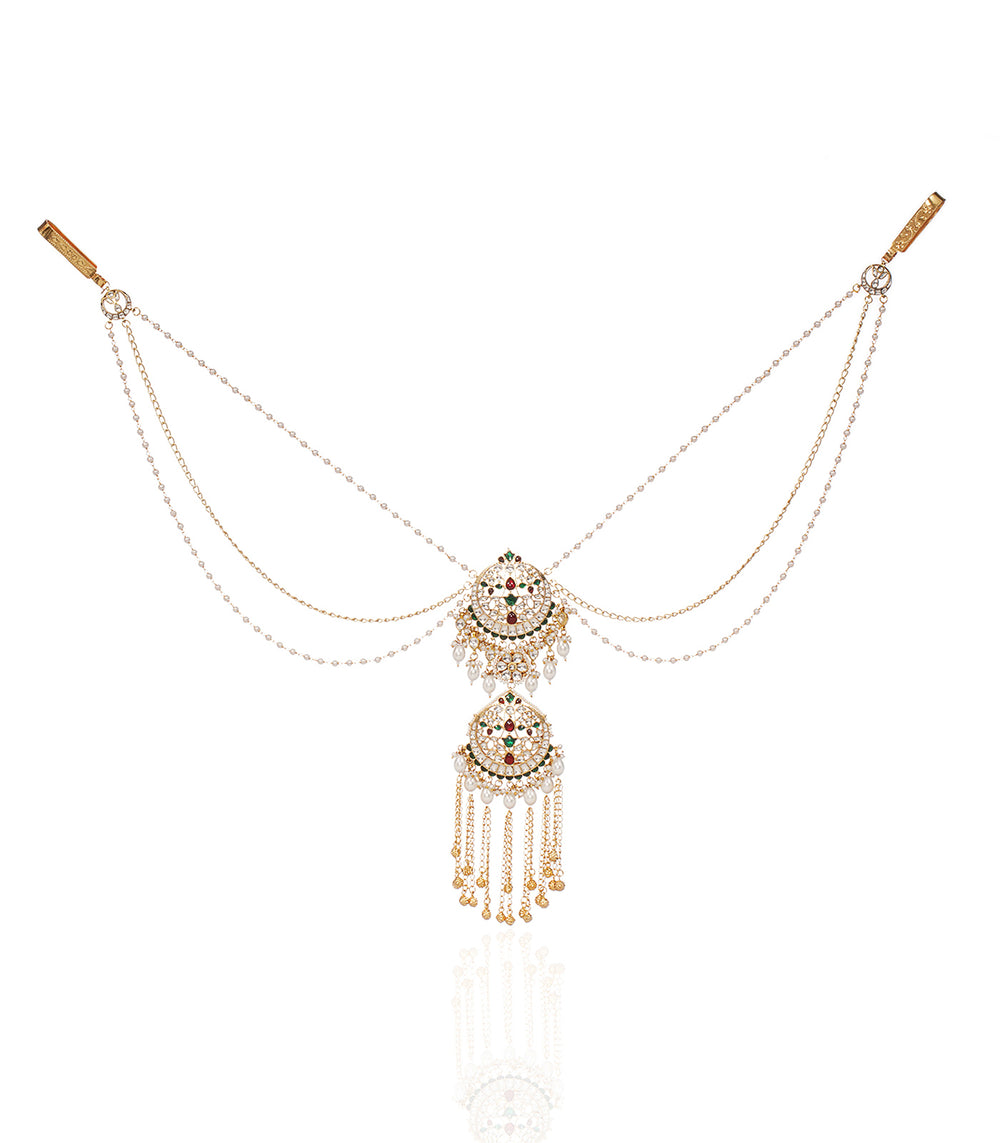 OJASVINI RED & GREEN KUNDAN WAIST BELT