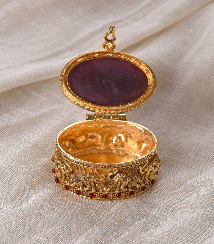 GOLD PLATED PURPLE KUNDAN SINDOOR BOX