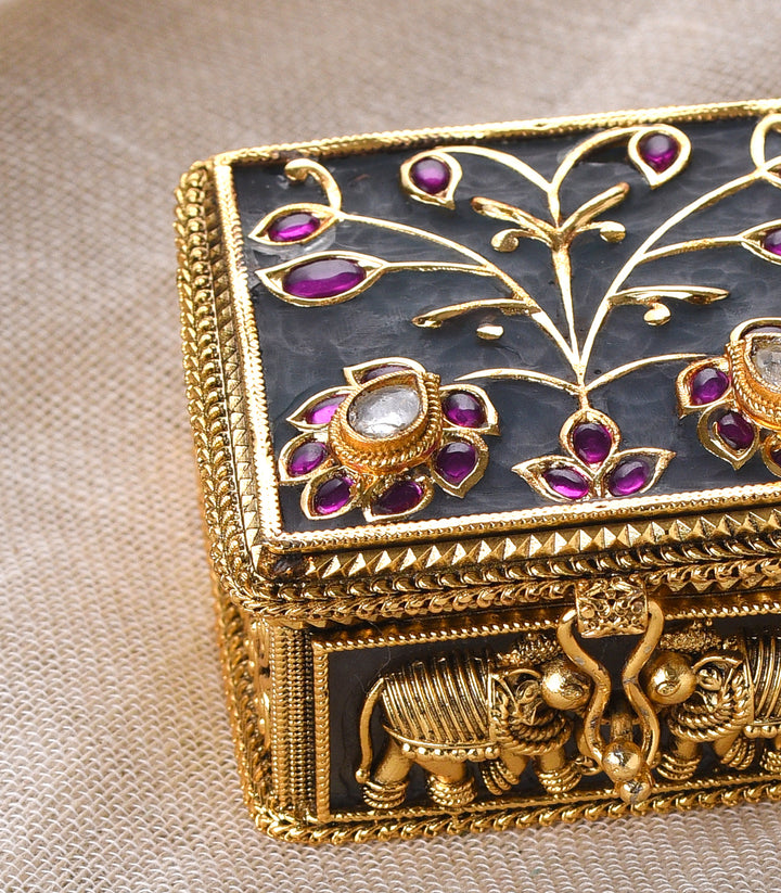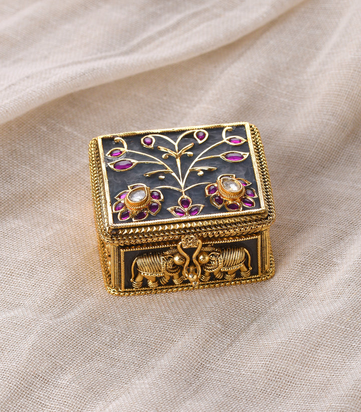 GOLD PLATED SQUARE GREEN KUNDAN SINDOOR BOX