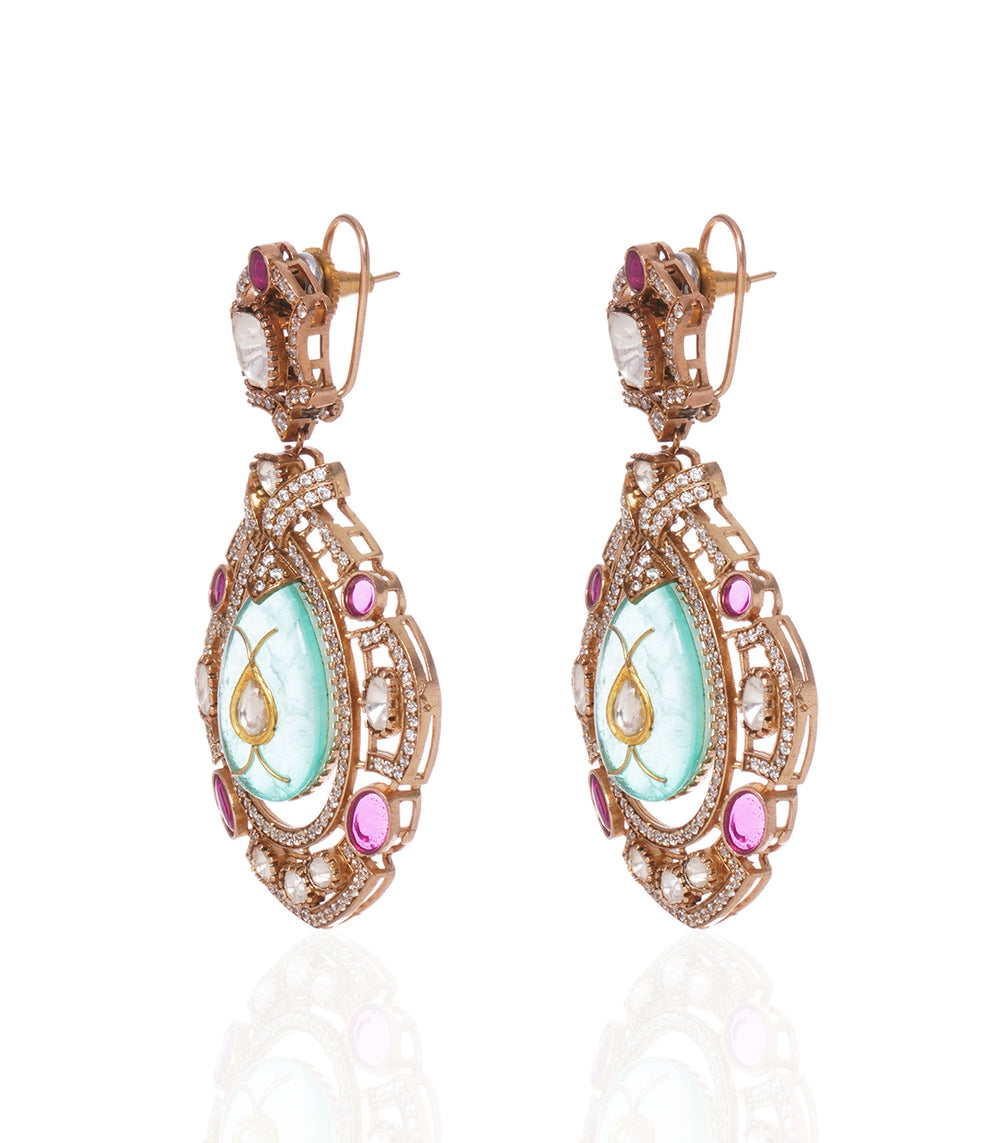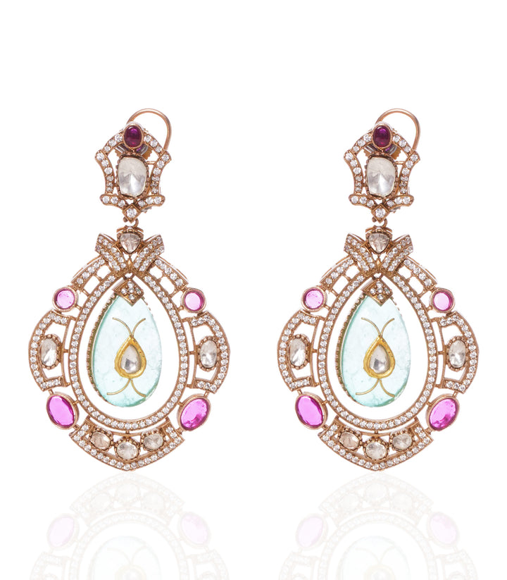 ANAYA RED & GREEN POLKI STATEMENT EARRING