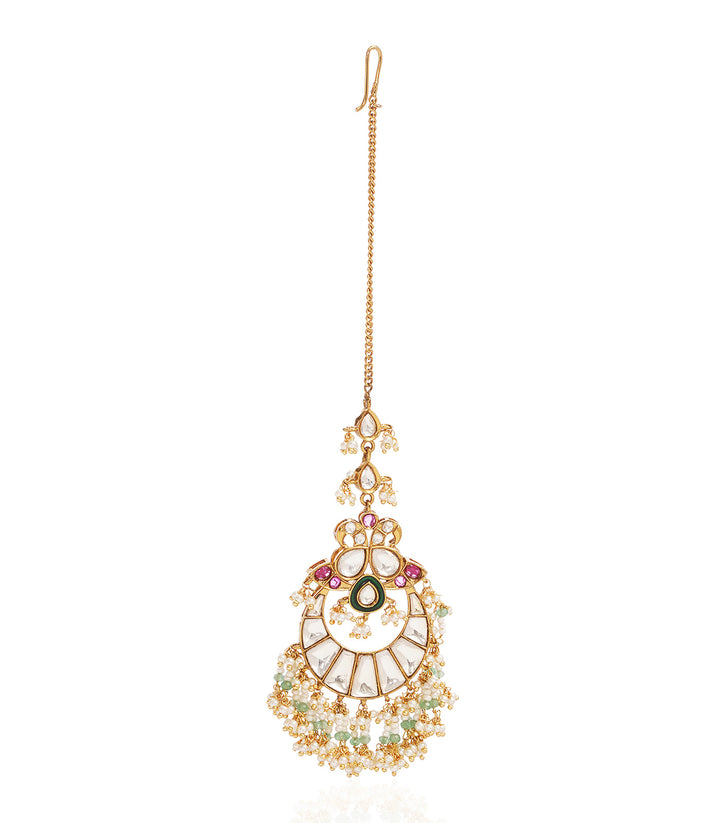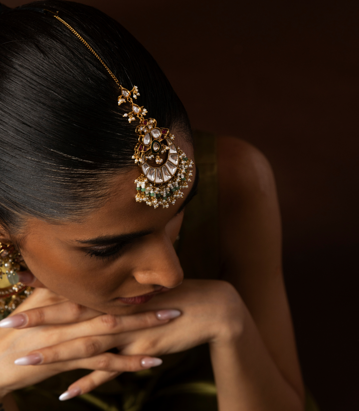 TRIVEDI RED & GREEN KUNDAN TIKA