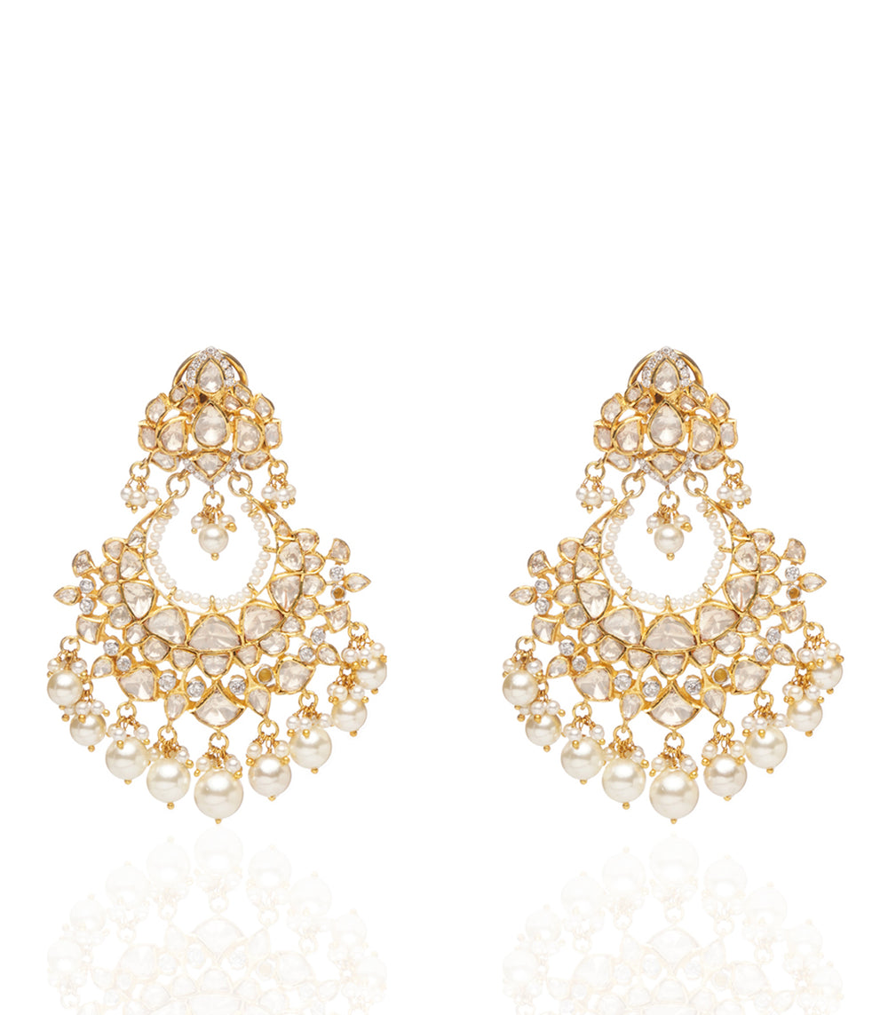 Dazzle in divine elegance with our Chandbalis. Embellished with lustrous pearl drops and a lavish array of moissanites, these earrings epitomize opulence and sophistication.
