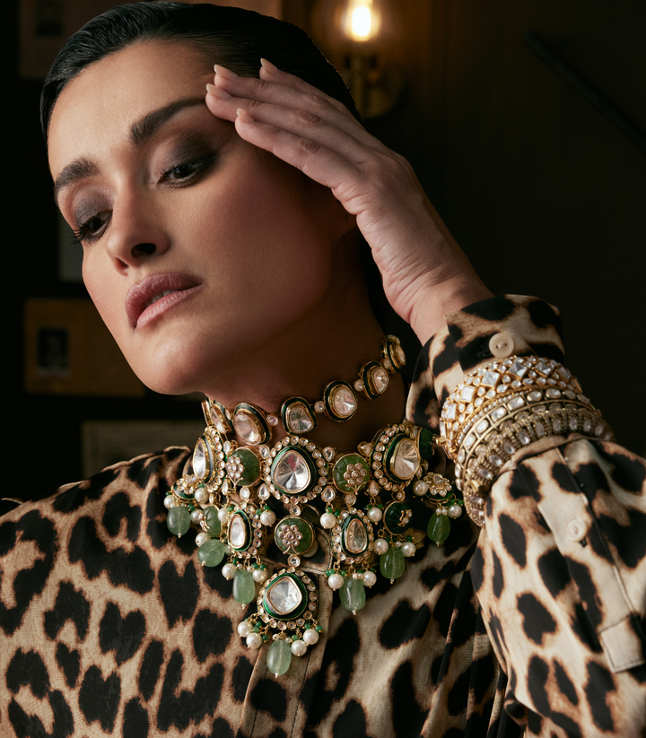 INAAYA GREEN POLKI NECKLACE SET