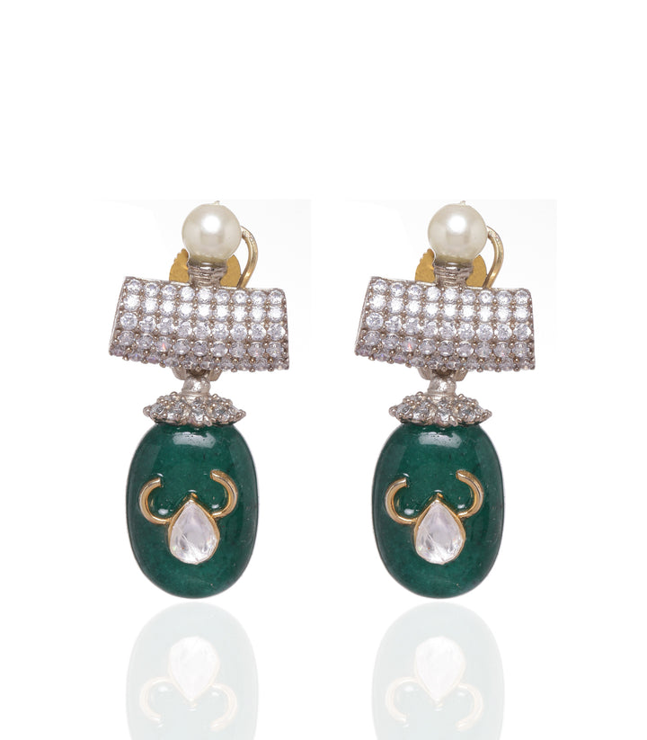 Dazzle in vintage allure with our Zircon and Kundan Necklace Set. Plated in antique gold on alloy base, this piece exudes timeless charm. The necklace features kundan-embedded beads, adding a touch of traditional elegance to your look.