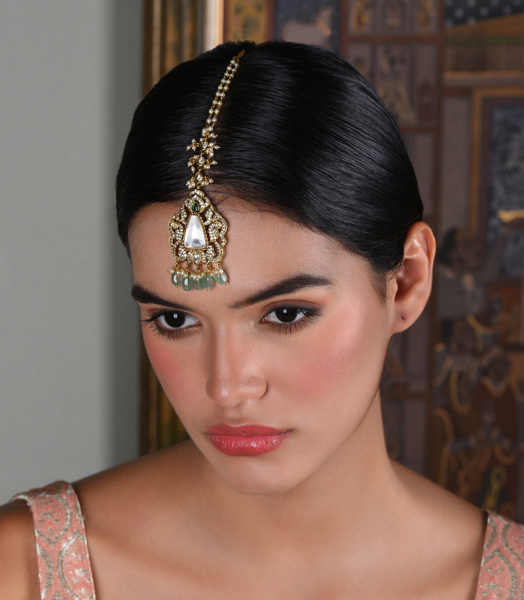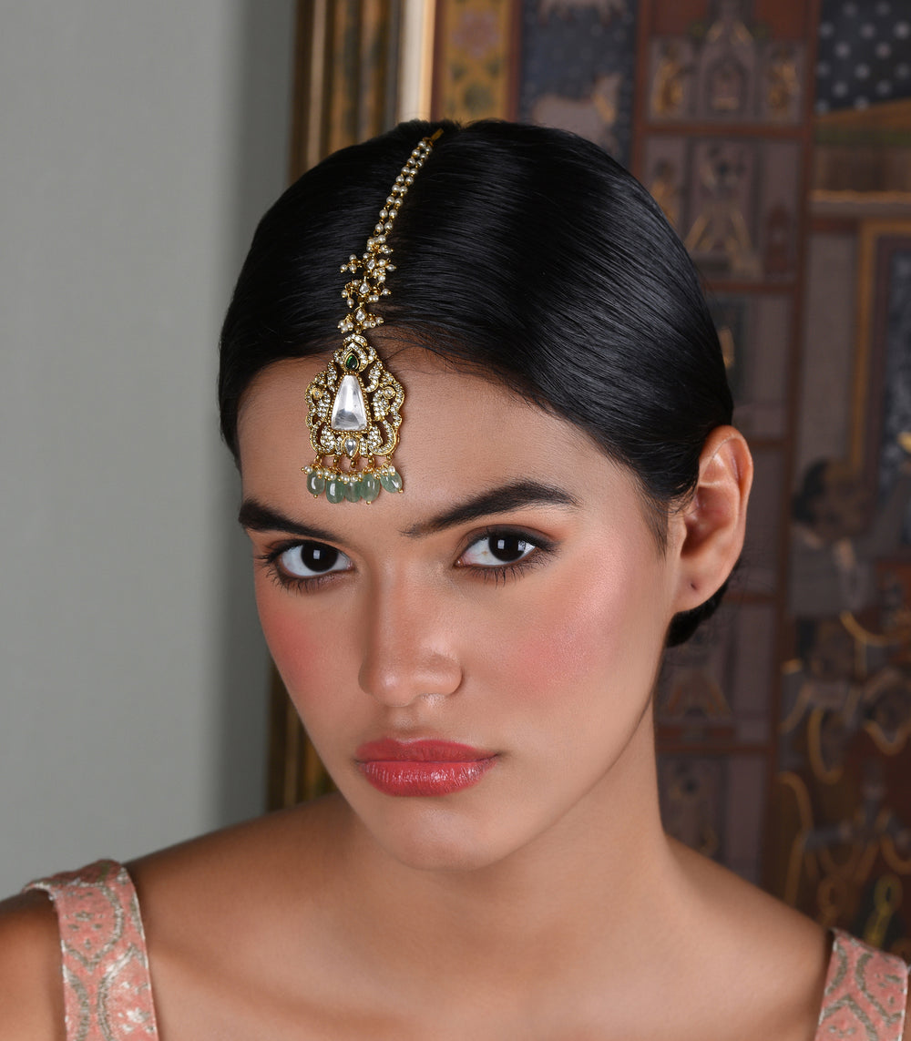 CHAARVI ANTIQUE FINISH GREEN POLKI TIKA