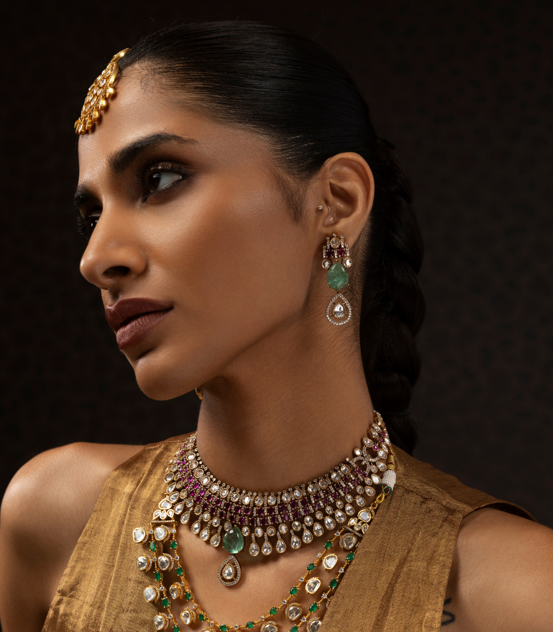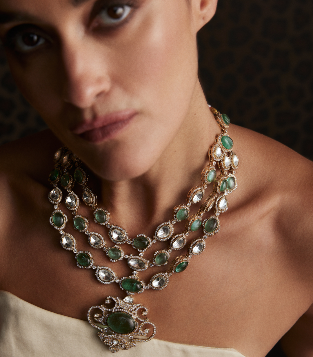 SAMPRATI GREEN POLKI GROOM NECKLACE