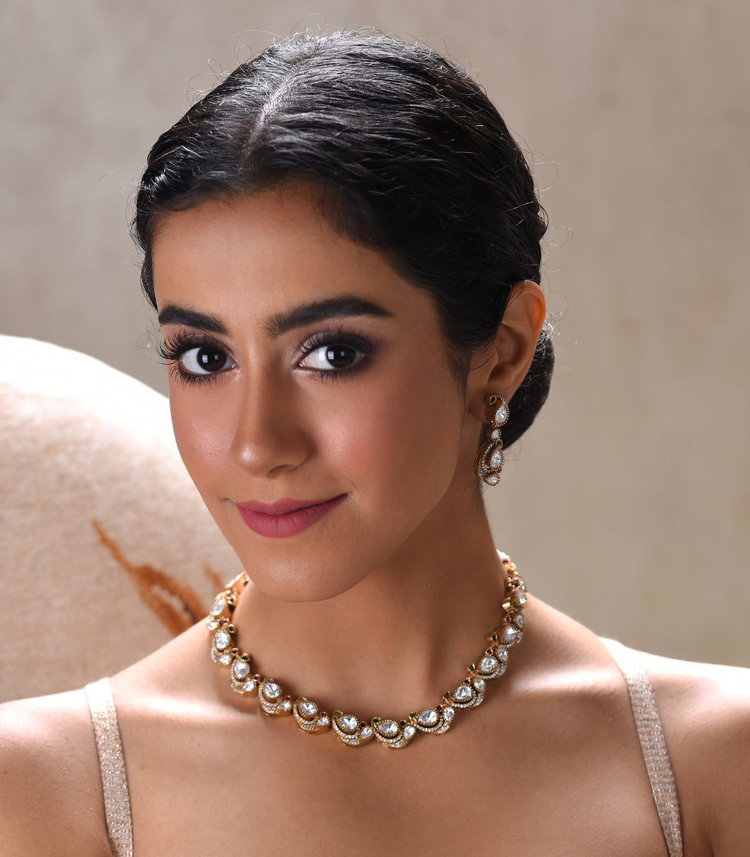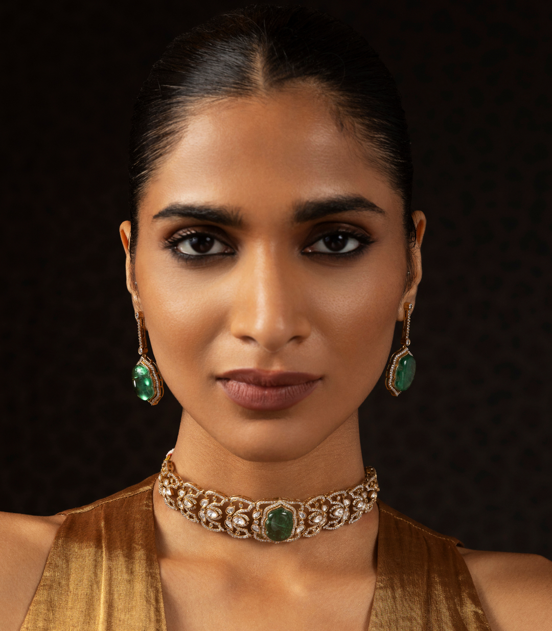 CHAARVI GREEN ANTIQUE GOLD FINISH POLKI NECKLACE