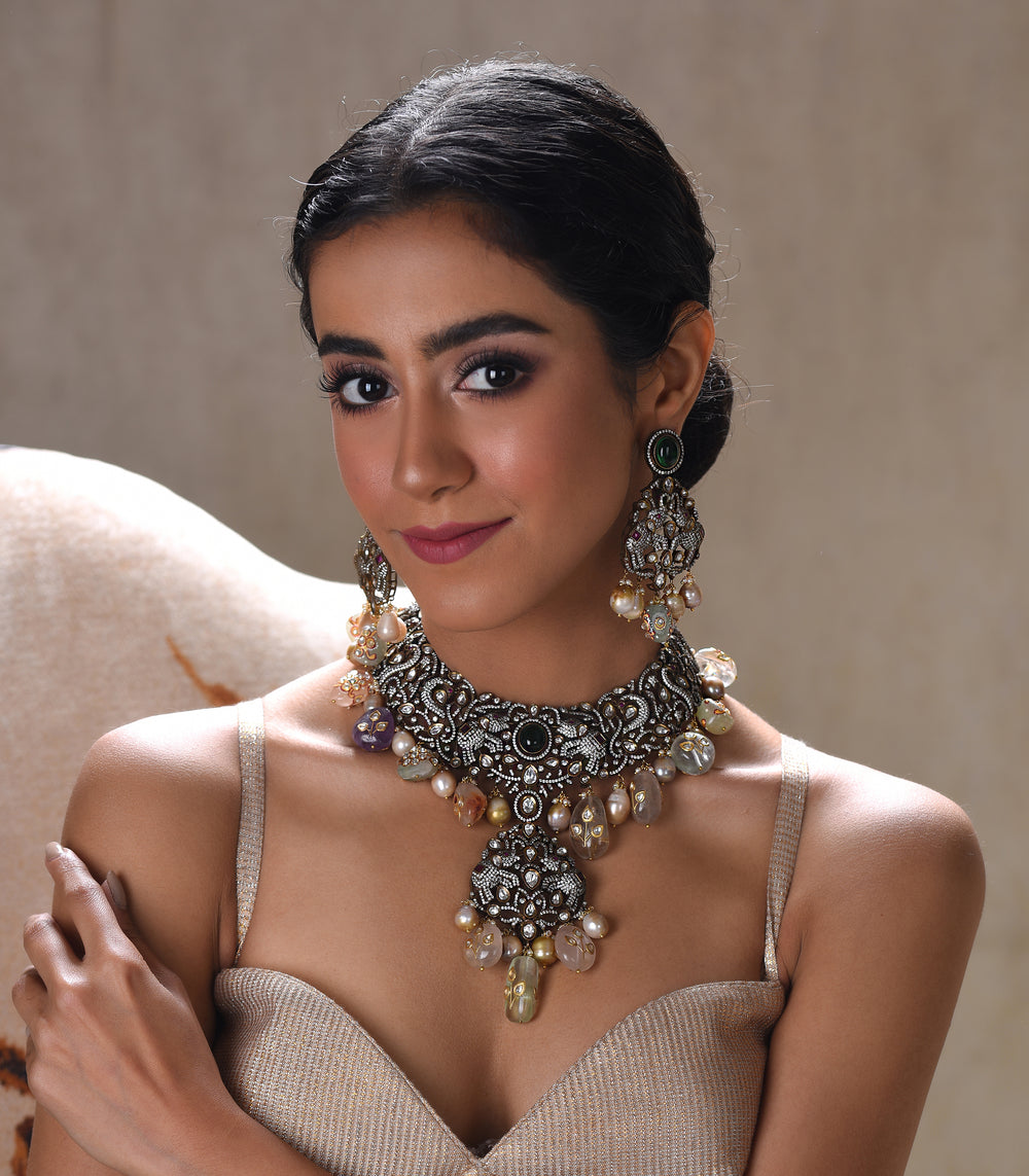 SVARA ANTIQUE FINISH NAVRATAN NECKLACE SET