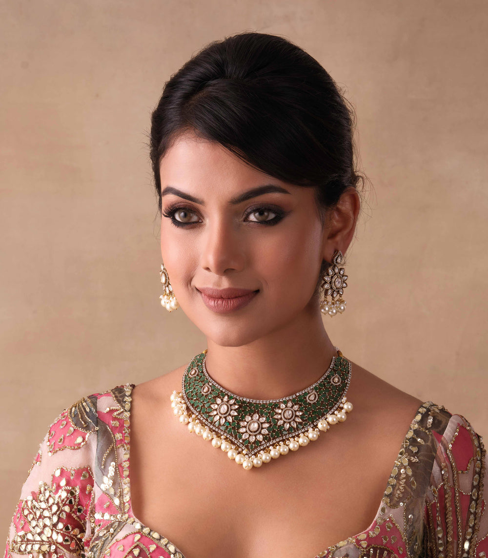 TANISHKA GREEN POLKI NECKLACE SET WITH PEARLS