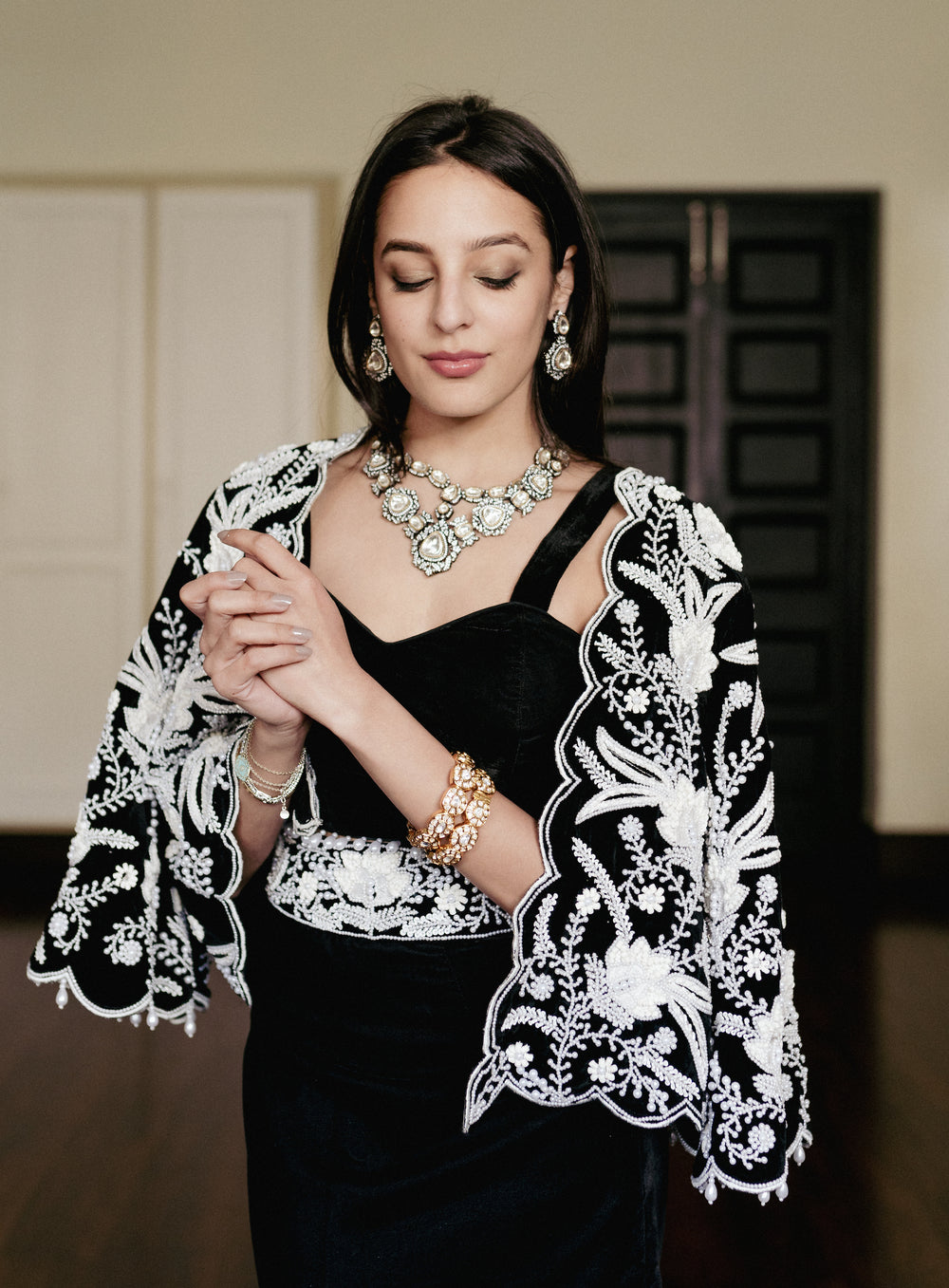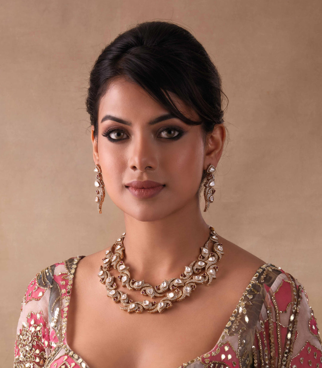 TANVIKA DARK OXIDIZED TWO LINE POLKI NECKLACE SET